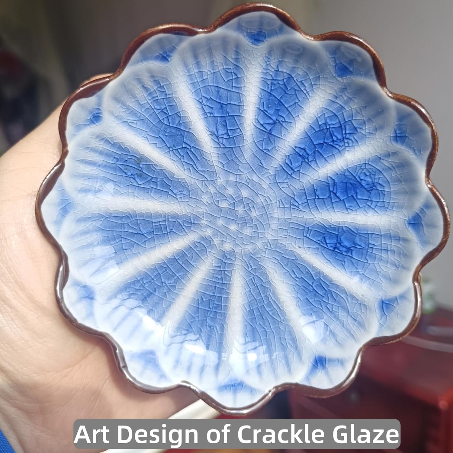 Ceramic Spoon Rest for Stove Top, Flower Cute Spoon Rest for Kitchen Counter, Cooking Spoon Holder for Kitchen Counter, Utensil Rest Spatula Rest Ladle Holder Tong Rest, 1 PC (Ice Cracks, Sapphire)