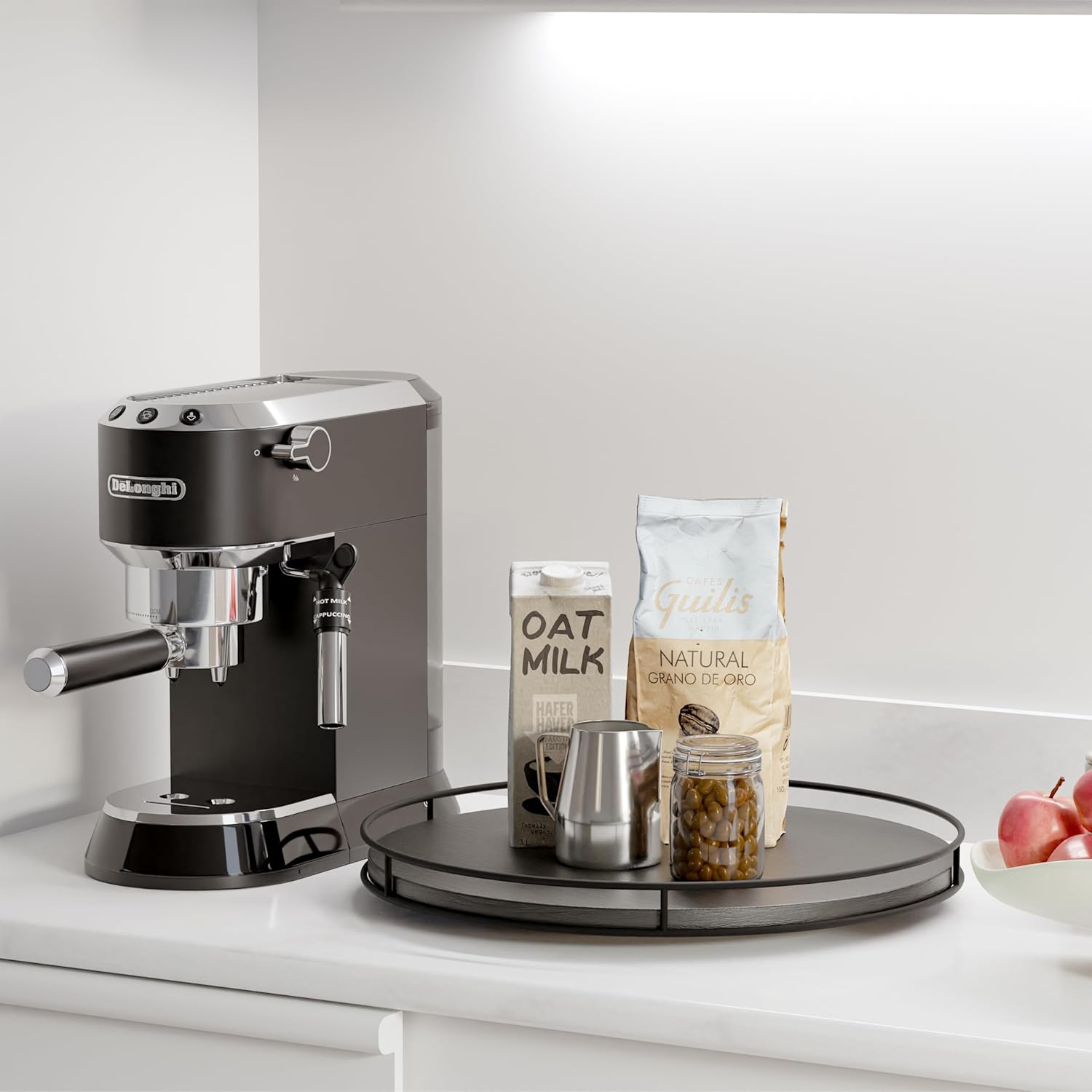 16" Acacia Wood Lazy Susan Turntable with Metal Frame - Large Black Lazy Susans Organizer Countertop Storage - Wooden Serving Tray for Charcuterie Cheese Board - Kitchen Counter Rotating