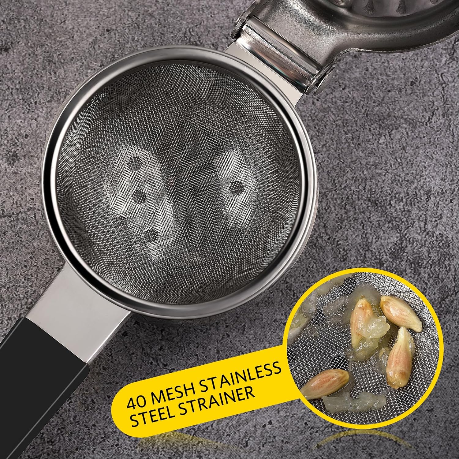 - More Juice Extraction: Our lemon juicer squeezer is designed specifically for extracting juice. Tests have shown that compared to other brands, it can extract an additional 10%-15% of juice, minimizing the waste of juice. In addition to the multiple small holes in the bottom of the citrus juicer, we have a 40 mesh sieve that completely filters out the pulp residue, giving you a purer juice