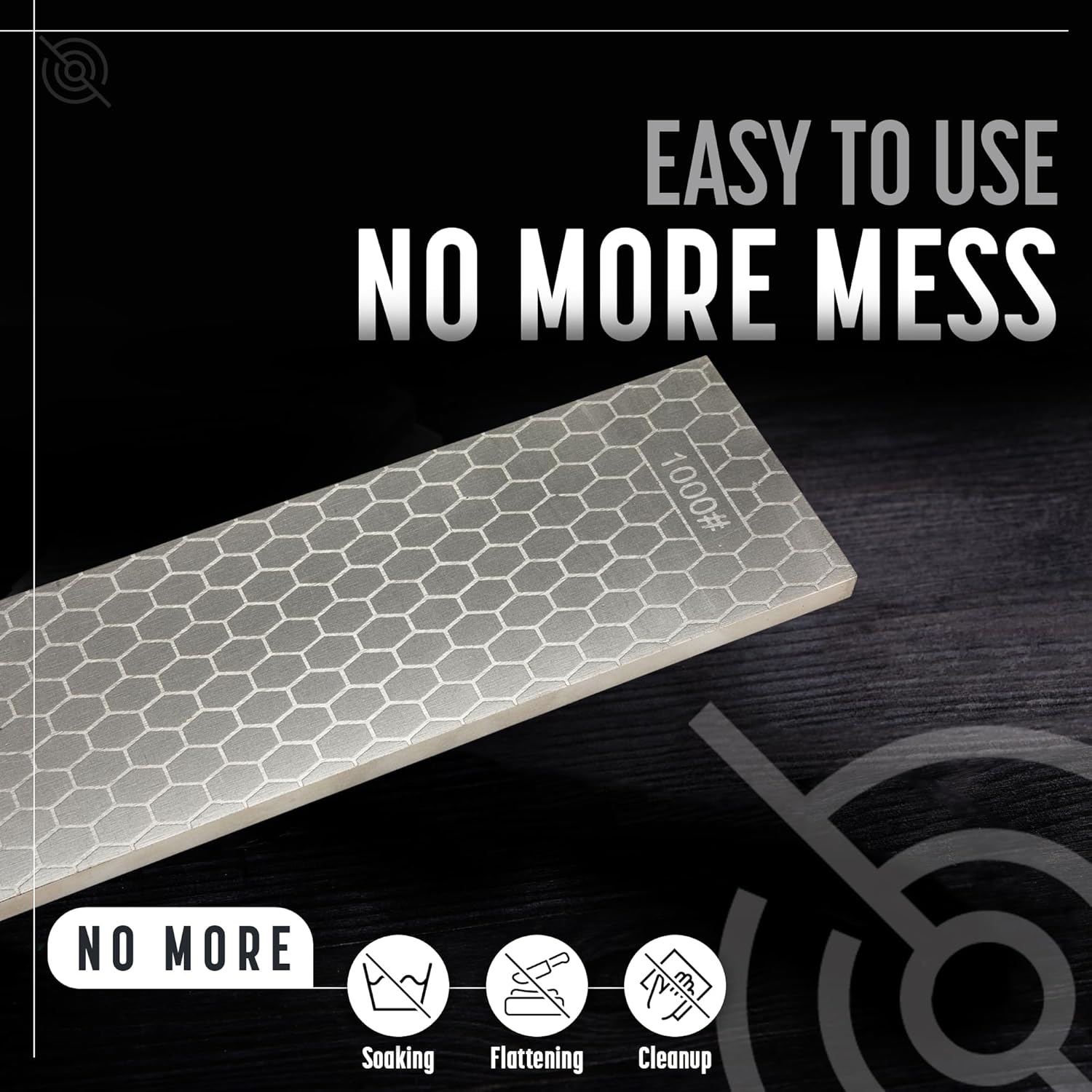 - PREMIUM NO-MESS DESIGN - No soaking, no oil, no flattening required. Honeycomb diamond pattern prevents clogging. Just add water and sharpen - clean up in seconds