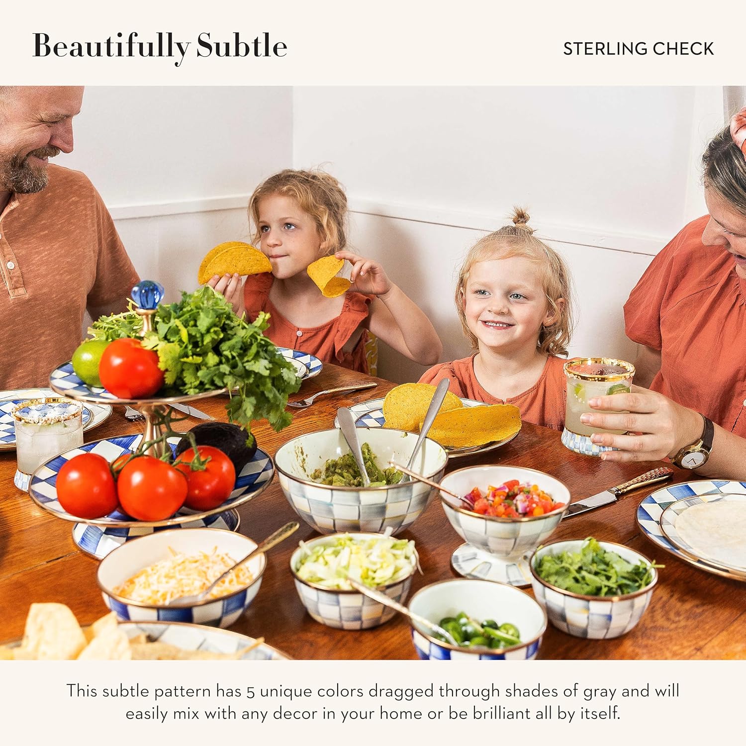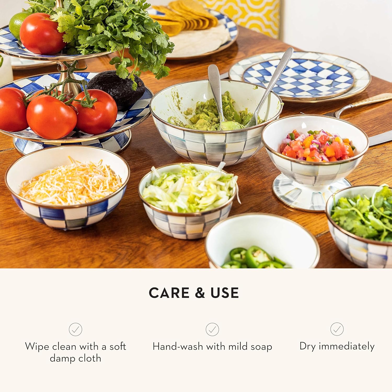 - ENTERTAINING & PARTY ESSENTIAL: The subtle Sterling Check pattern on this cute small bowl features glossy hand-painted gray-and-white checks. It has a 2-cup capacity, a hand-glazed heavy-gauge steel underbody, and a gold luster trim.