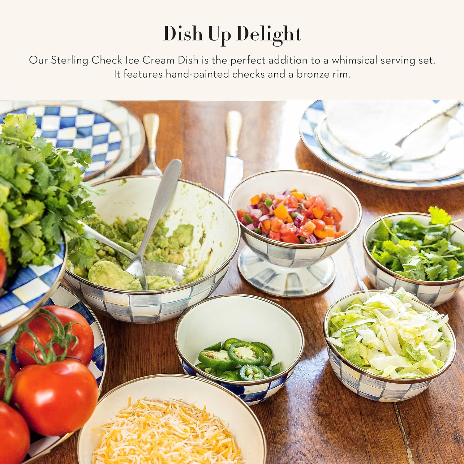 MACKENZIE-CHILDS Enamel Ice Cream Bowl, Serving Bowls for Entertaining, 2-Cup Capacity, Gray-and-White Sterling Check