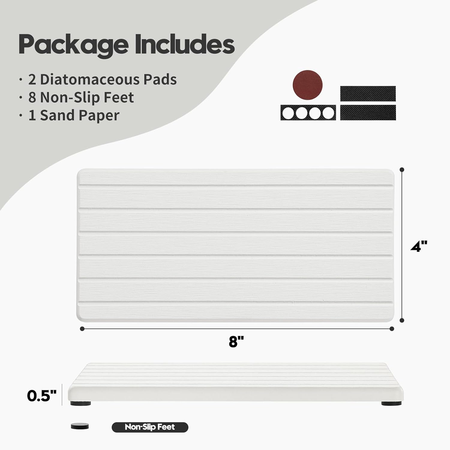 2PCS Water Absorbing Stone Drying Tray Mat For Bathroom Sink & Kitchen Counter Faucet Organizer Decor, Quick Dry Dish Soap Dispenser Sponge Holder, Vanity Sink Caddy Bar Coaster,White-8"*3.8"