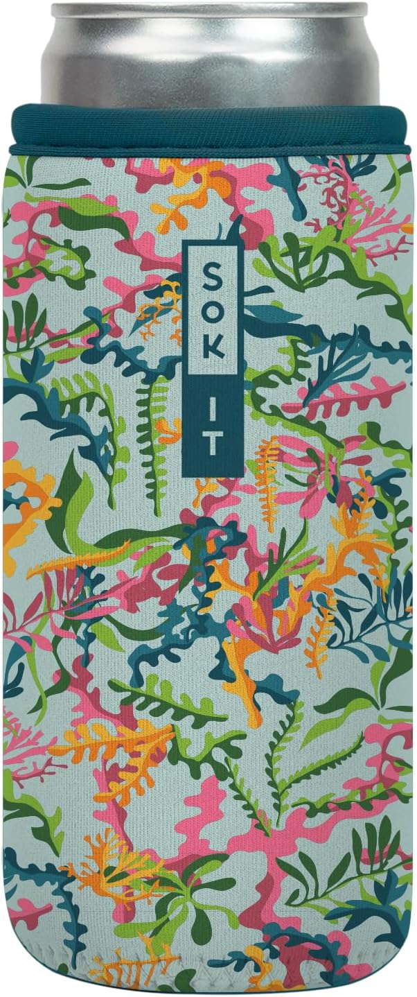 Sok It CanSok Sleeve for Beer & Soda Insulated Neoprene Cover (Colorful Corals, 12oz Slim Can Sleeve)