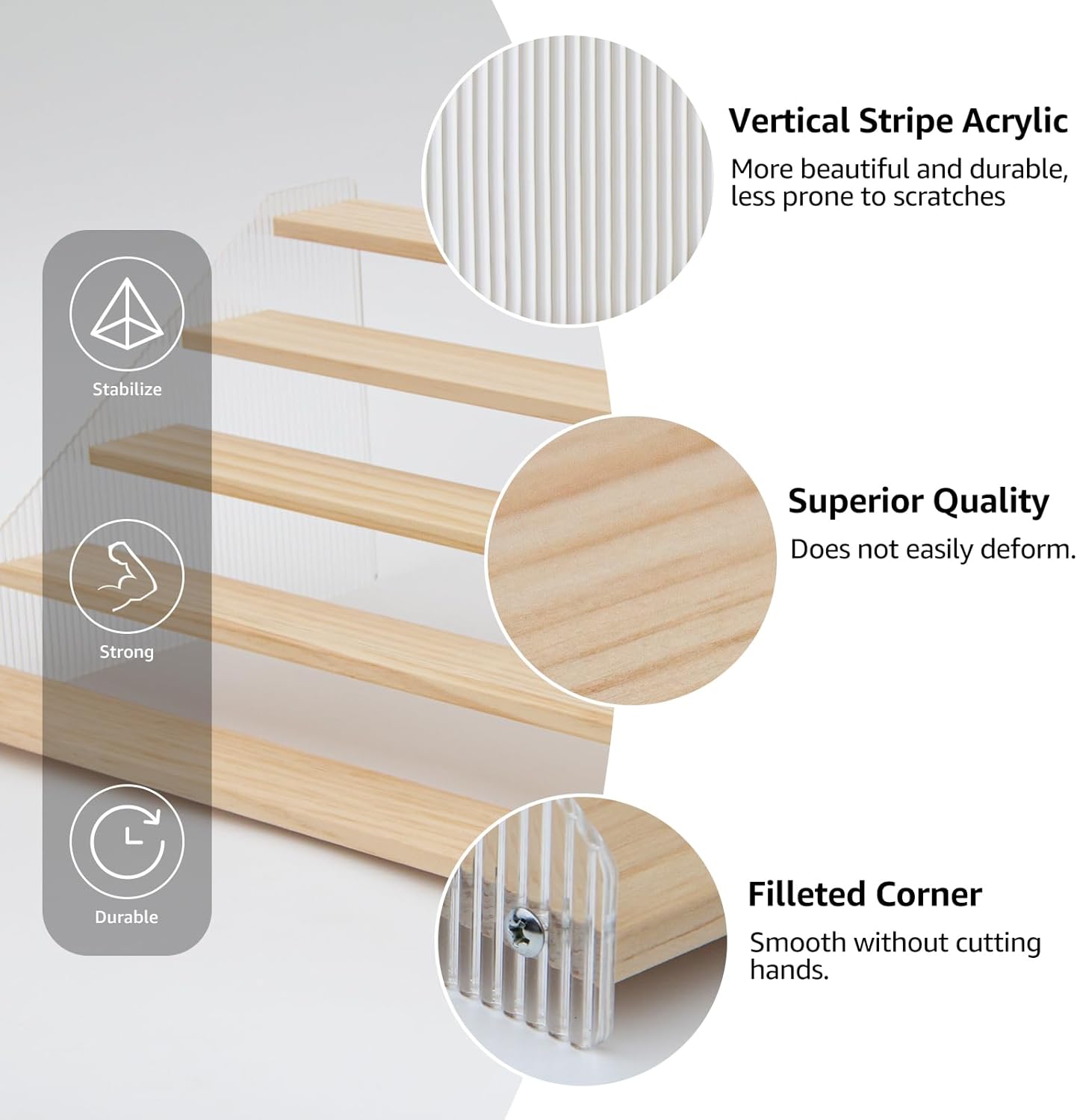- Elegant & Sturdy: Risers display stands constructed from high-quality pine wood and corrugated acrylic, making it both aesthetically pleasing and fashionable, as well as durable and resistant to deformation, the spice shelf is a beautiful and robust addition to any space