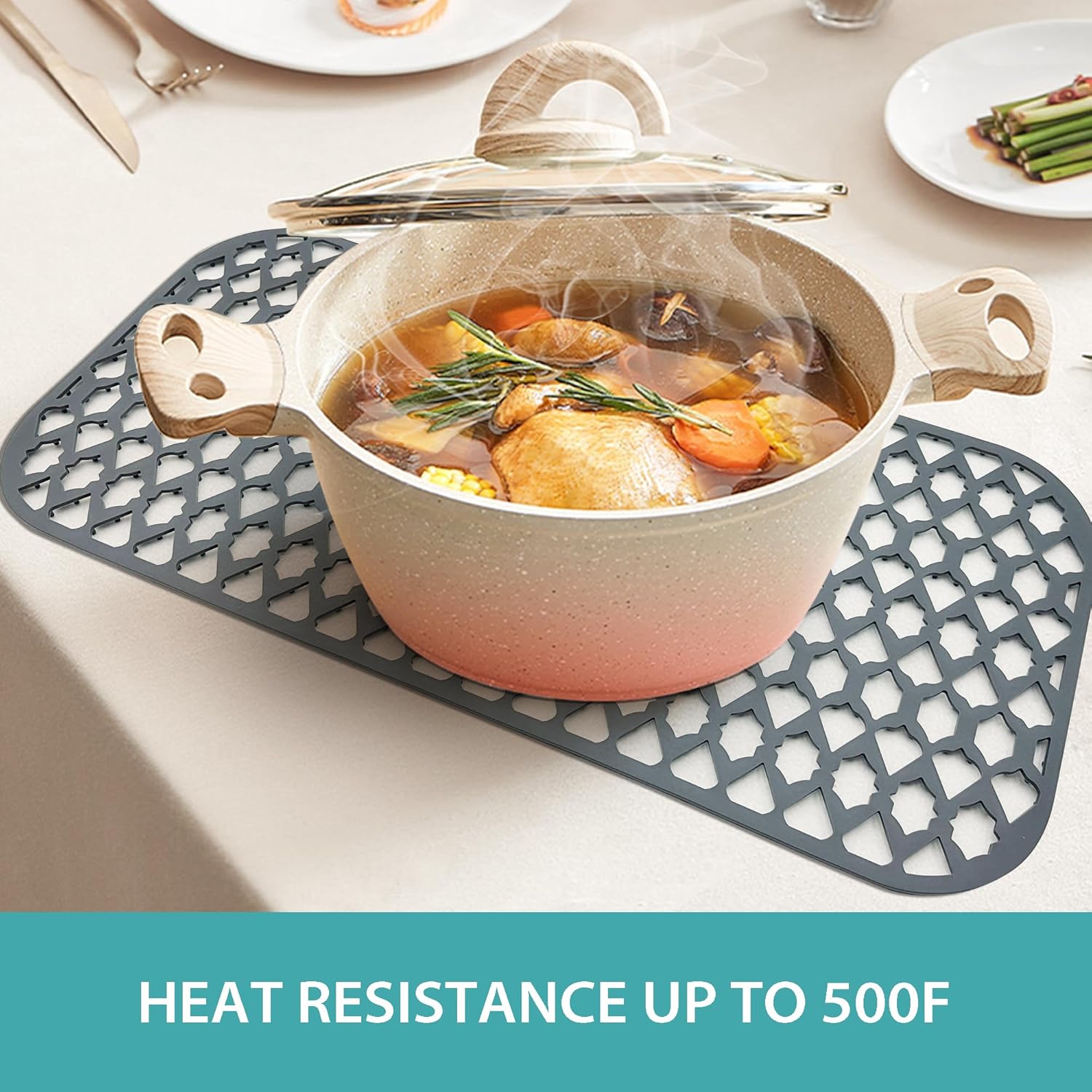- Heat Resistant & Elastic Silicone Material - Because of the high melting point of silicone material, Our kitchen sink mats can be used to hold high-temperature tableware. Of course, the soft silicone material can form effective protection for bottom of the kitchen sink and table surface, especially when children use tableware, which can prevent many accidents.