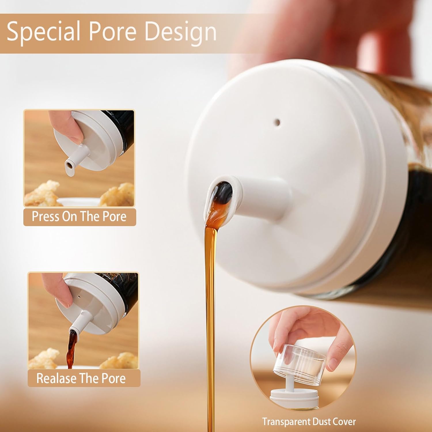 - Premium Materials: Crafted from BPA-free transparent glass, these oil bottles ensure safety and durability. The transparent dust cover and oil nozzle are made of ABS materials, while the built-in silicone sealing ring ensures a tight seal, prolonging the bottles' lifespan.