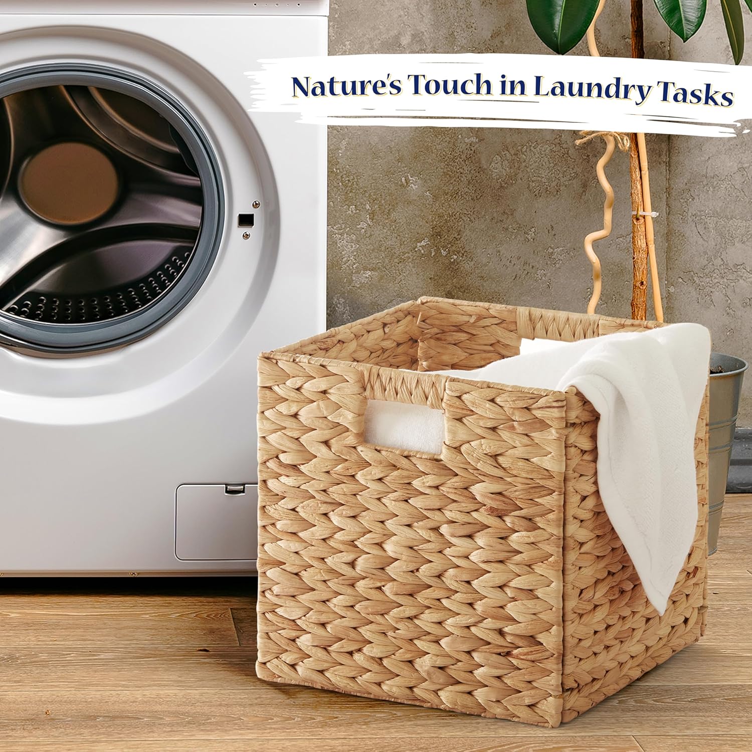 BLUEWEST Water Hyacinth Storage Basket (Set of 4) Woven Hyacinth Storage Basket, Laundry Water Hyacinth Bin for Organizing with Carrying Handles, Rattan for Shelves