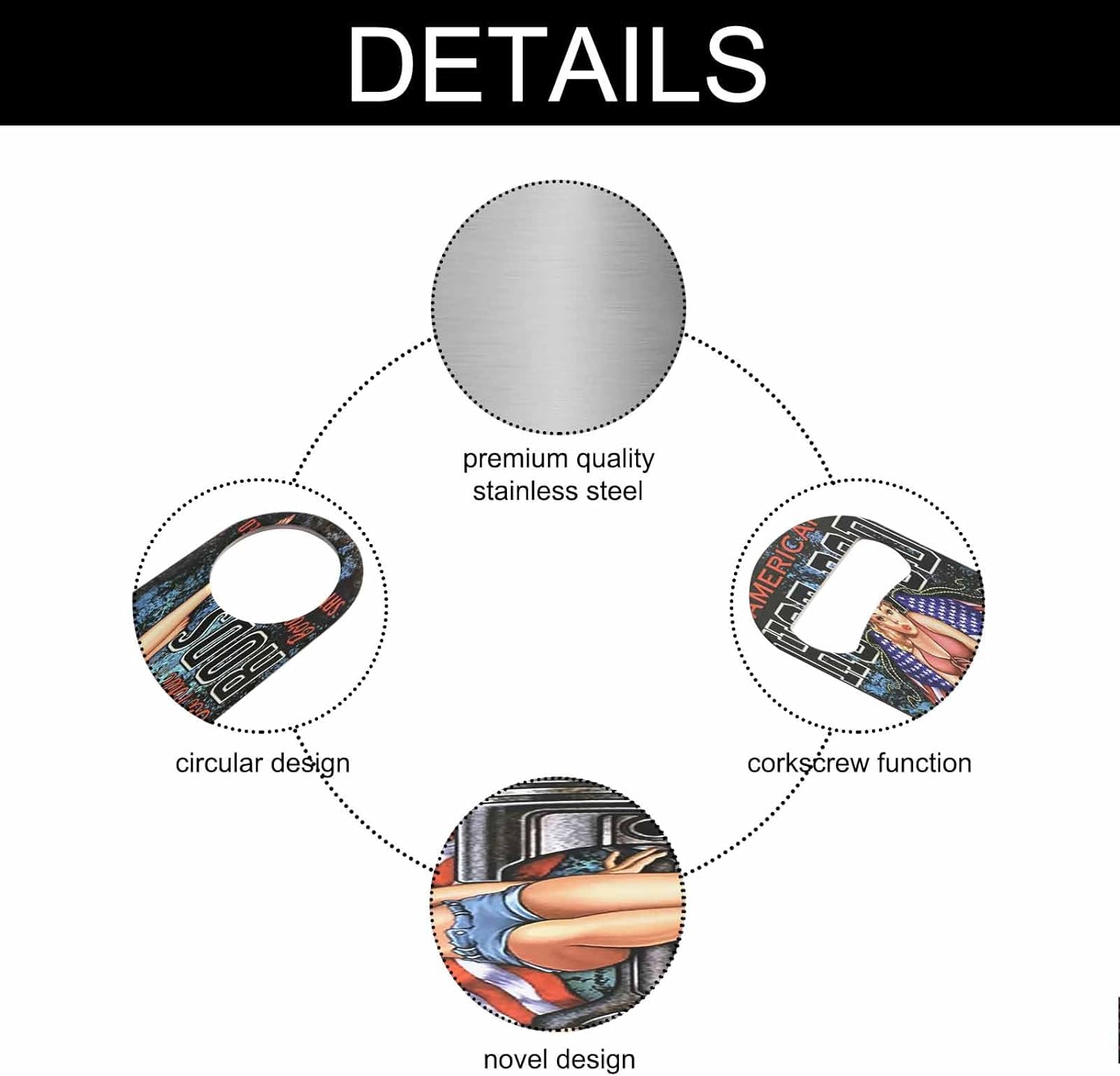 - Premium Material: Our hot rod pin up girl bottle opener is made of stainless steel, sturdy for long-term use.