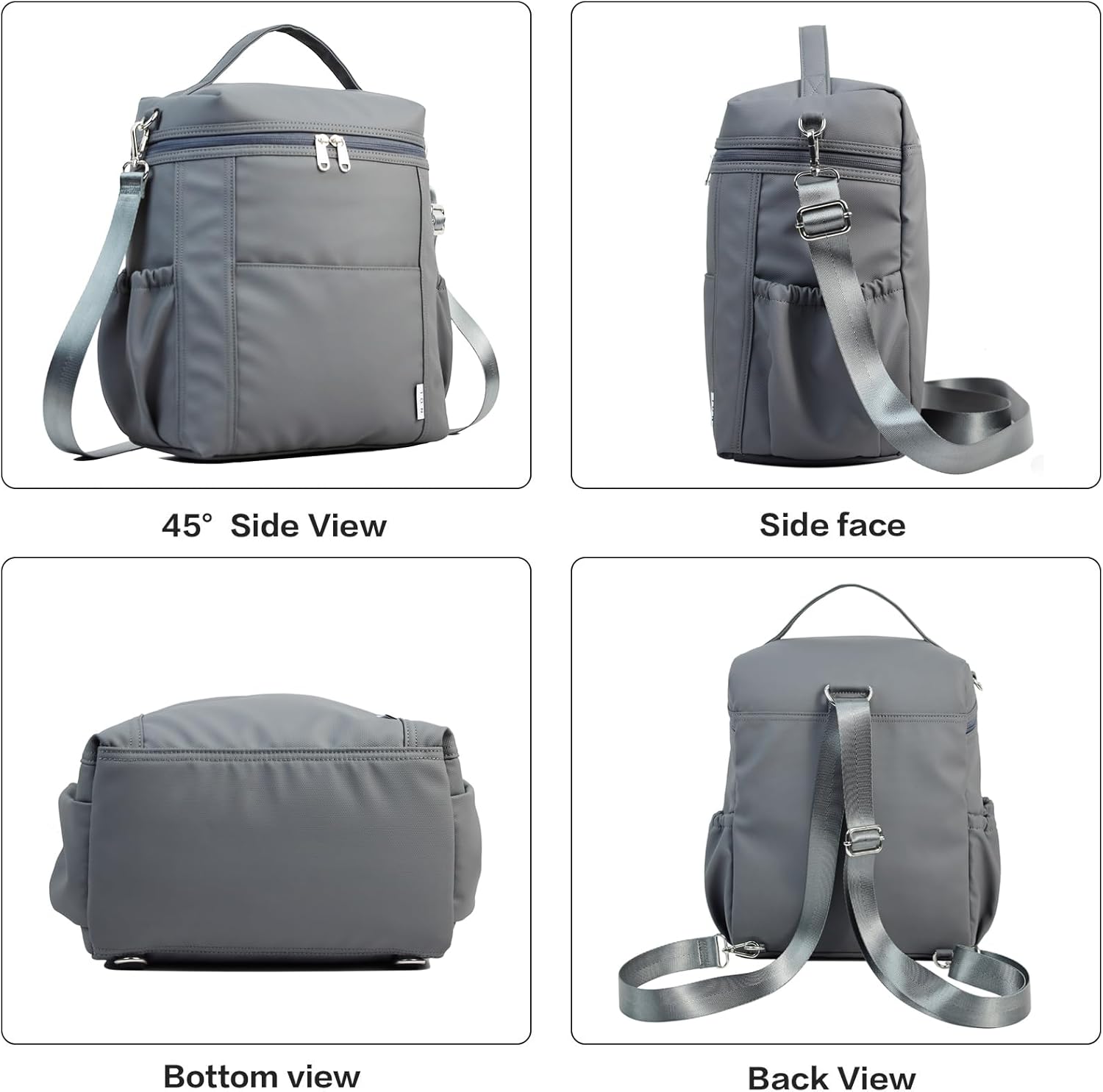 NOL Natural Organic Lifestyle Insulated Lunch Bags for Women Cooler Bag Lightweight Nylon Waterproof Lunch Box For Work (Dark gray, Large)