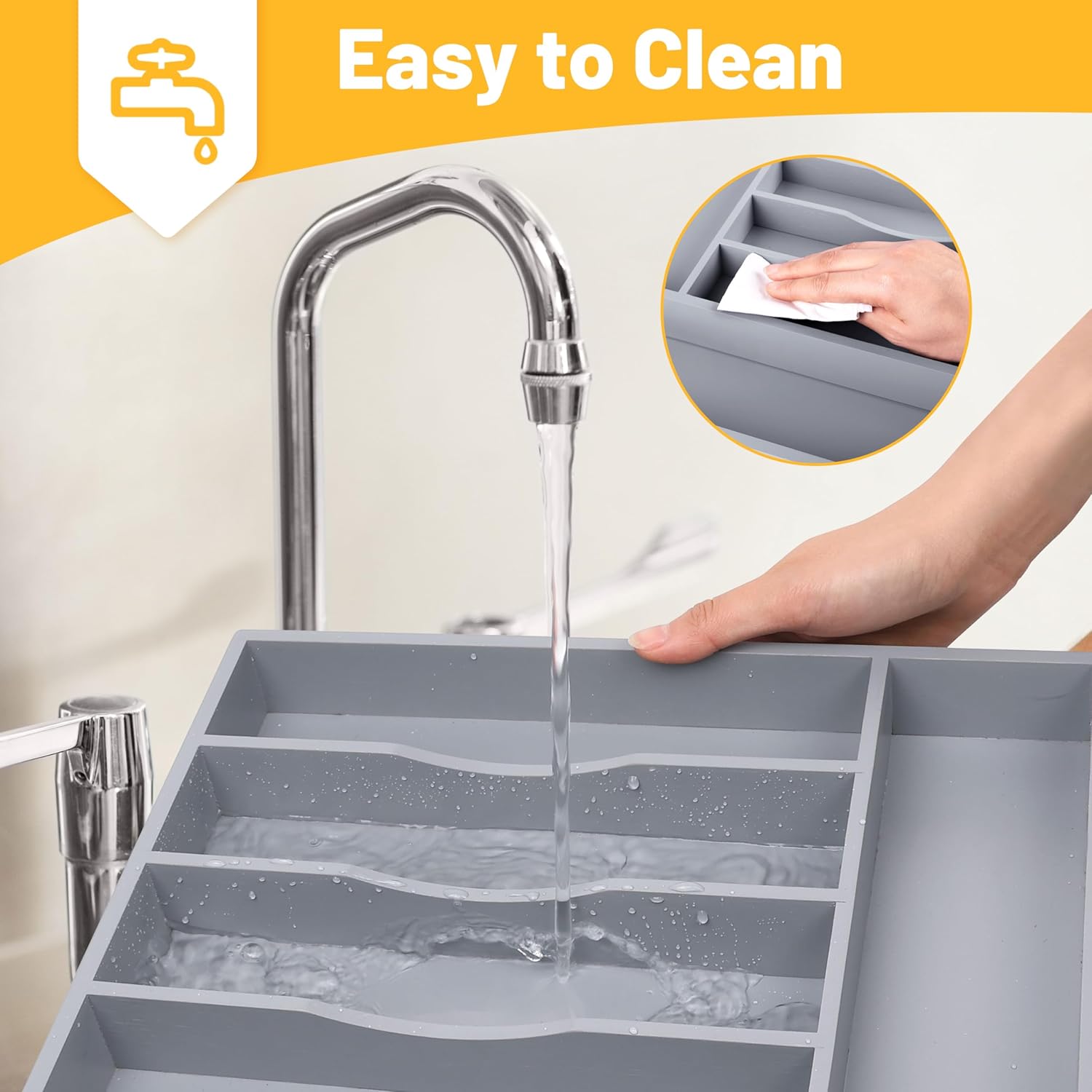 - ✅【Multifunctional Design For Your Needs】Our multi-purpose cutlery organizer is not only suitable for storing silverware, but also with large capacity & deep grooved edges, the storage tray can also be used to organize your office, bathroom sink drawer, dresser, & craft corner, being perfect to sort pencils, pens, grooming supplies, makeup brushes and lipsticks, or art supplies like paintbrushes and charcoal.