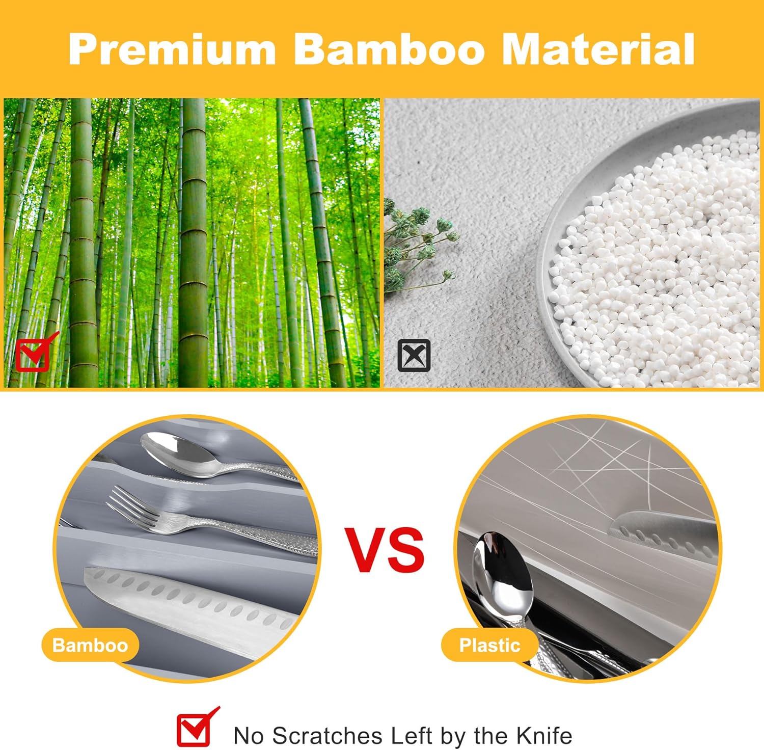 - ✅【Sturdy and Well-made】Our silverware tray for drawer is made of minimally refined natural bamboo, a renewable, sustainable source, making them a green choice, with the age of over 4 years, which makes the silverware holder durable enough for long time use. Unlike the plastic and metal drawer organizer, our flatware & utensil is water & odor resistant, the silverware organizing tray is perfect for years of use, especially in kitchens where things can get messy quickly.