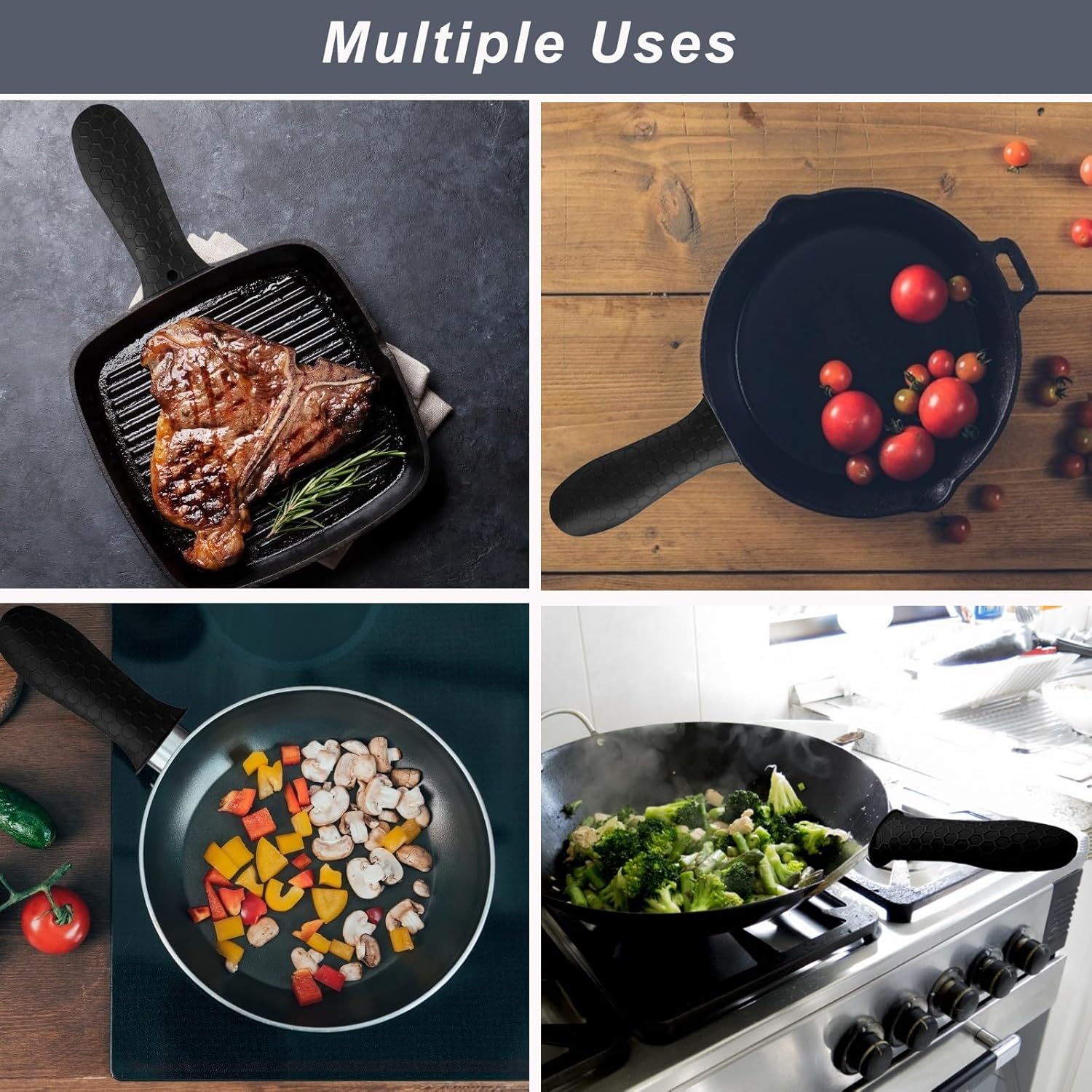 - KEEP SAFE : Removable silicone sleeve slips easily onto hot frying pan & pot hand grips, protects your fingers from burning. Safer to use than typical cloth mitts & small pot holders.keep your family safe ,for home wife,kids health gift.