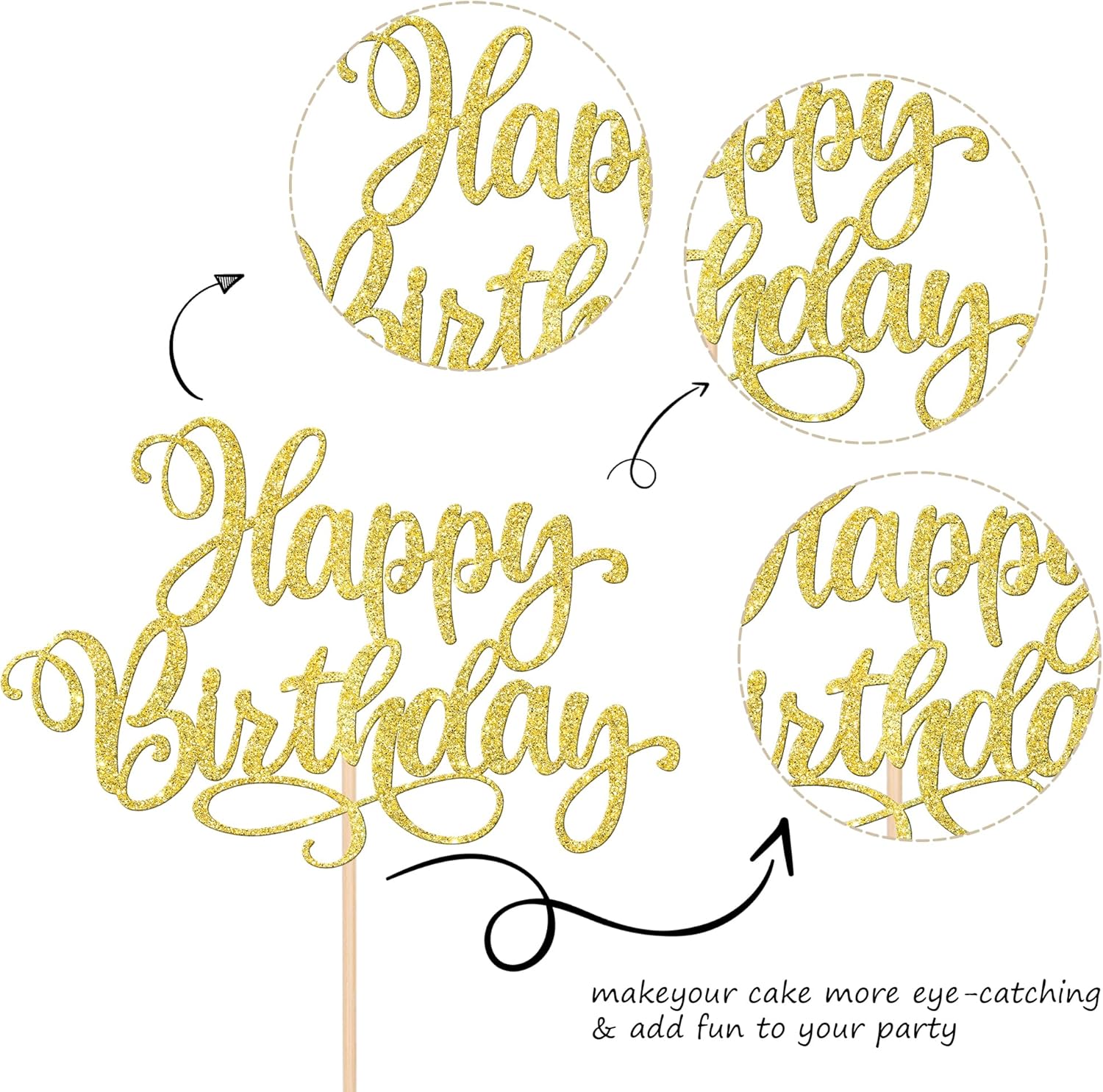 - Wide Usages ! The happy birthday day cake topper is perfect for happy birthday theme party, anniversary celebrating theme party cake decorations,it can make your cake more attractive and bring the fun to your party.You can also apply them for ice cream, fruits, cookies and other desserts.