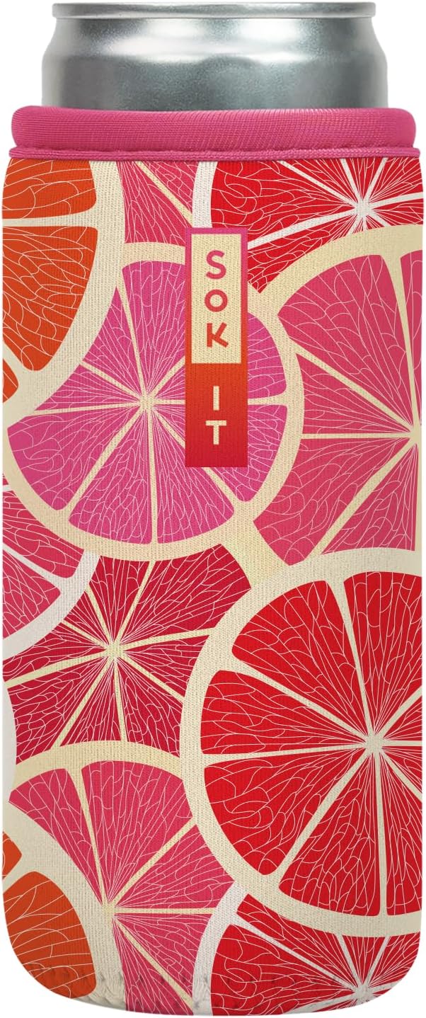 Sok It CanSok Sleeve for Beer & Soda Insulated Neoprene Cover (Sunshine Slices, 12oz Slim Can Sleeve)