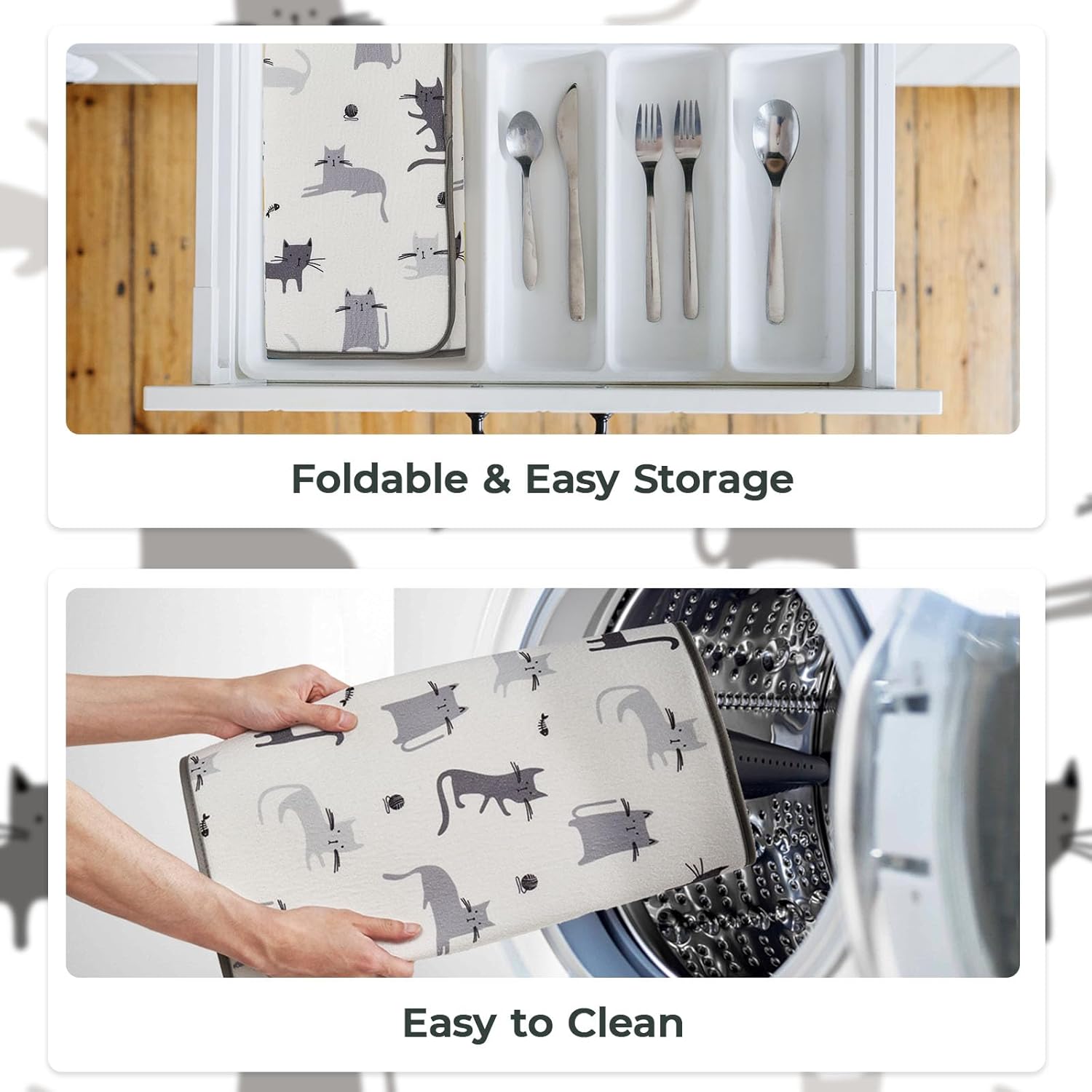 - 【Easy Maintenance & Great Home Gift】Machine washable for easy cleaning, this kitchen tableware drying pad features absorbent microfiber construction with excellent color-locking effects. It won't fade after repeated cleaning and can be reused multiple times.Great hostess gifts, housewarming gifts, and camping accessories. Decorated with personalized printed patterns, our microfiber dish drying mat will surprise your family and friends.