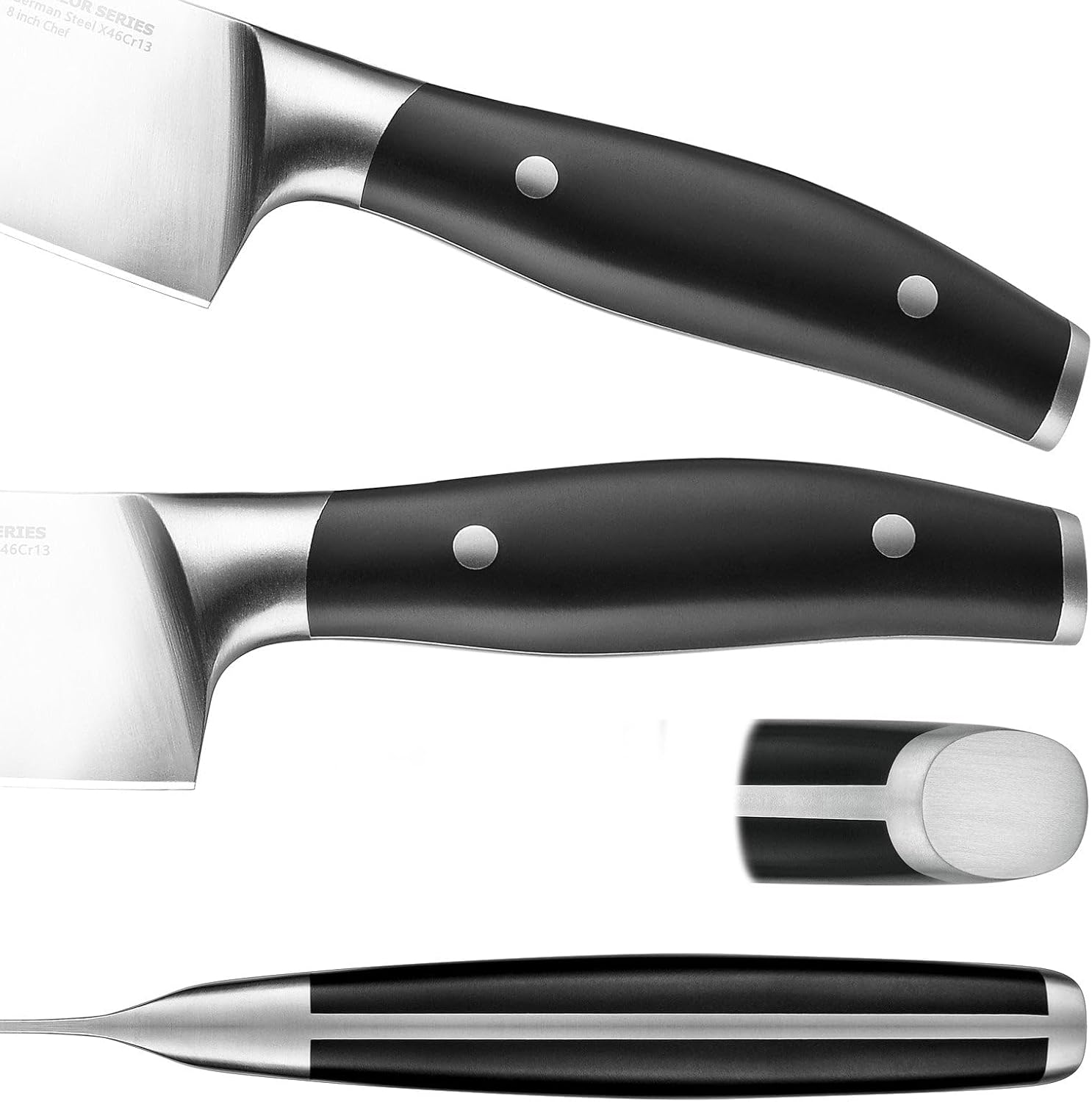 - 【Top Quality】Crafted from X46Cr13 German stainless steel with 54-56HRC, each knife in our starter knife set promises precision cutting, durability, and resistance to wear and tear. Experience the ease of slicing with tools designed for perfection.