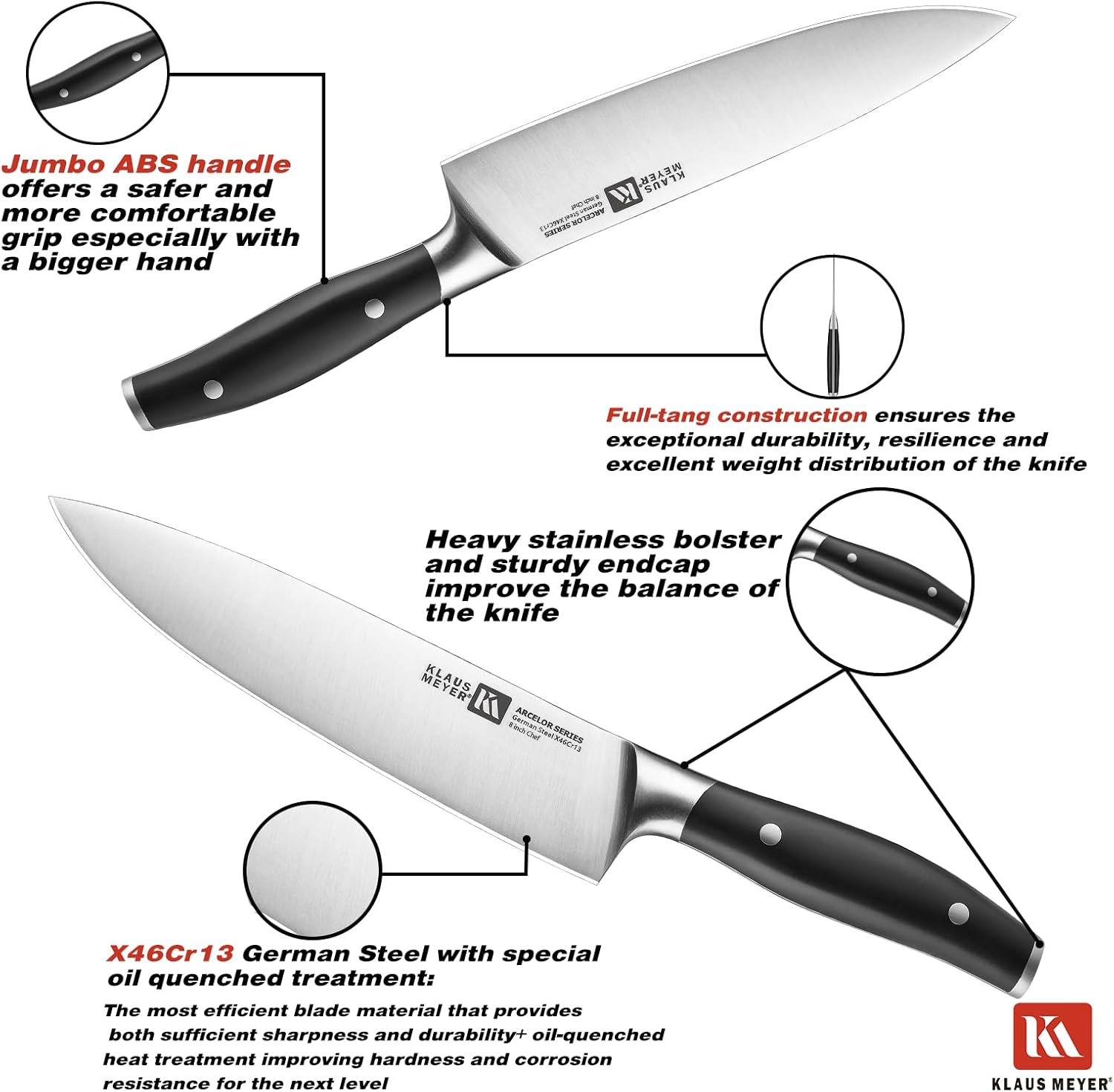 - 【Ergonomic & Safe Handle】The ergonomic ABS handle is designed for comfort, minimizing hand fatigue during extended use. Its stain-resistant nature ensures the knife remains hygienic and easy to maintain, making food preparation effortless.