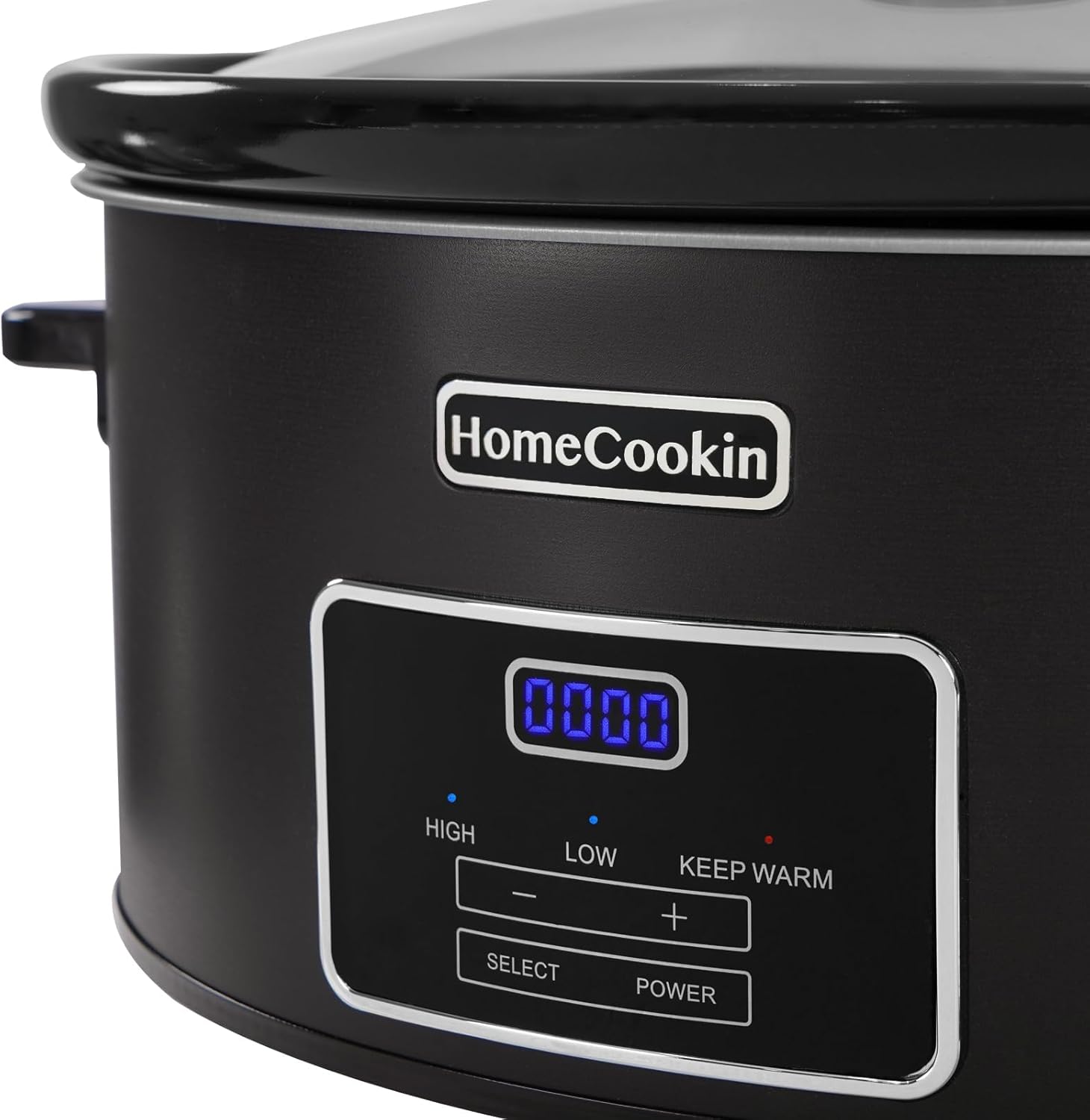 HOMECOOKIN 6 Quart Programmable Slow Cooker, Kitchen Appliances, Perfect Kitchen Small Appliance for Family Dinners, Black Stainless Steel