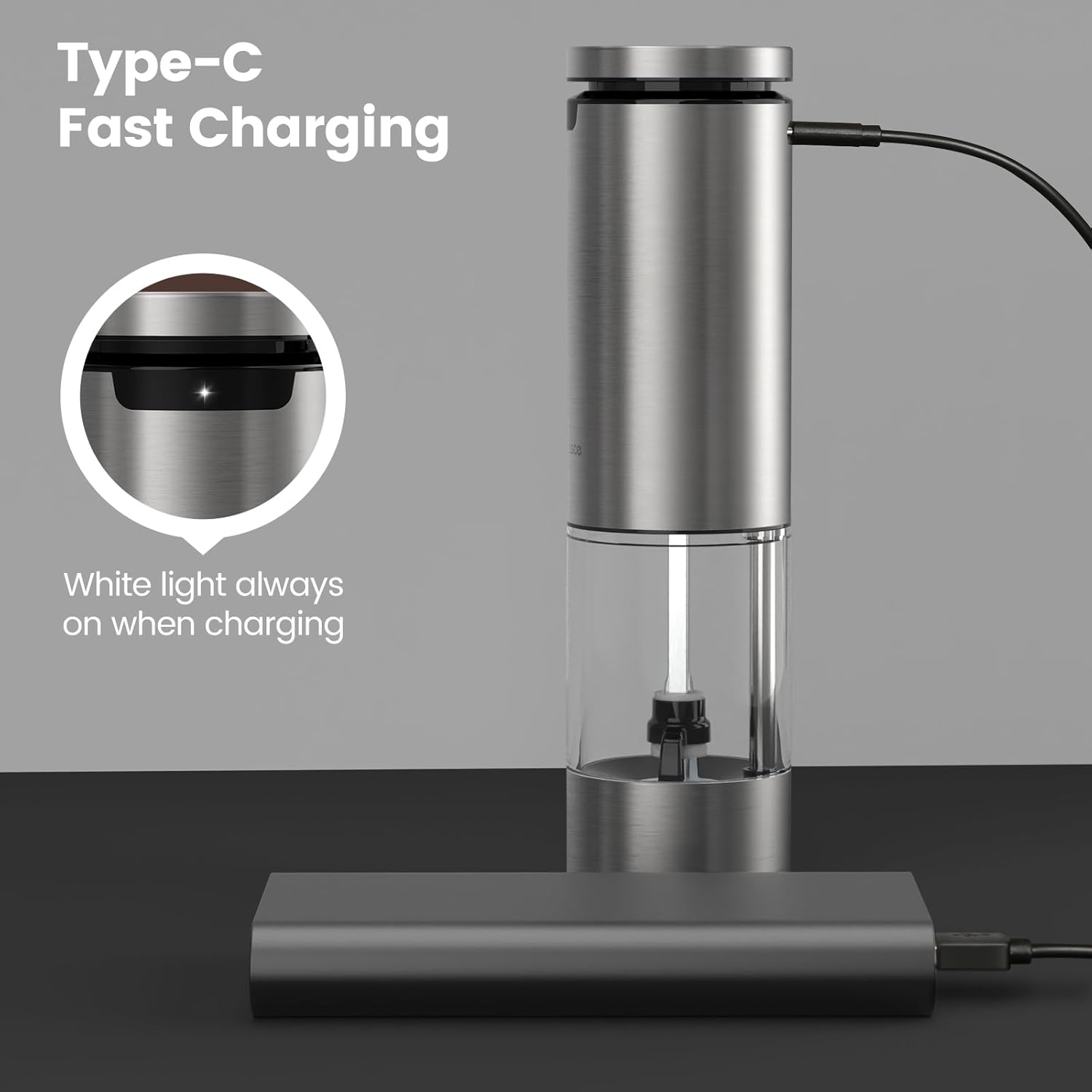 - Rechargeable: The electric salt and pepper grinder set comes with two USB charging cables, allowing you to easily recharge it via any USB port; No need for disposable batteries, saving you money and reducing environmental waste