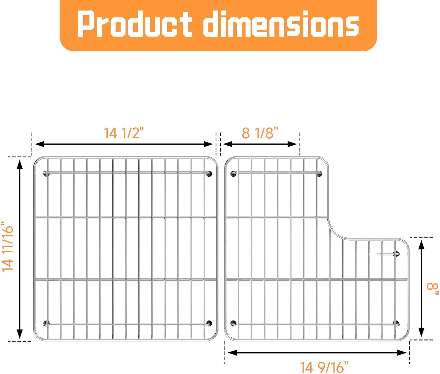 - Dimension: Left Rack Dimensions: 14-11/16" x 14-9/16", right Rack Dimensions: 14-11/16" x 8-1/8". Overall size: 29-1/8"x14-11/16"(inclueds Left and Right Racks) Note: Please confirm that our sink protector fits your sink before placing an order