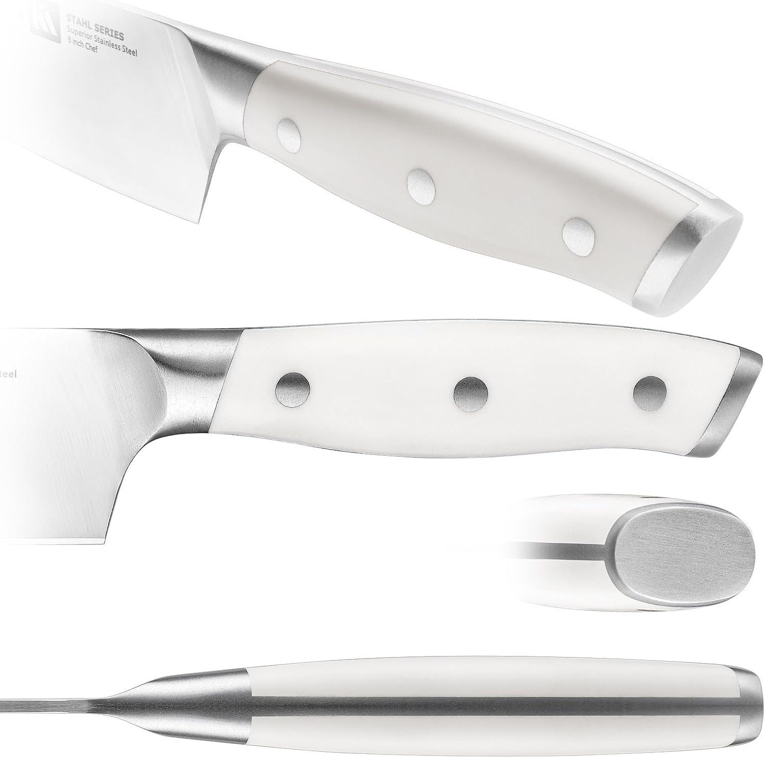 - 【Easy Care & Storage】All knives are stored in the solid wooden block that protect the kitchen knives. Hand washing is recommended to maintain the sharpness and durability of the knives. The Stahl Series are built to last for years with minimal care after use.