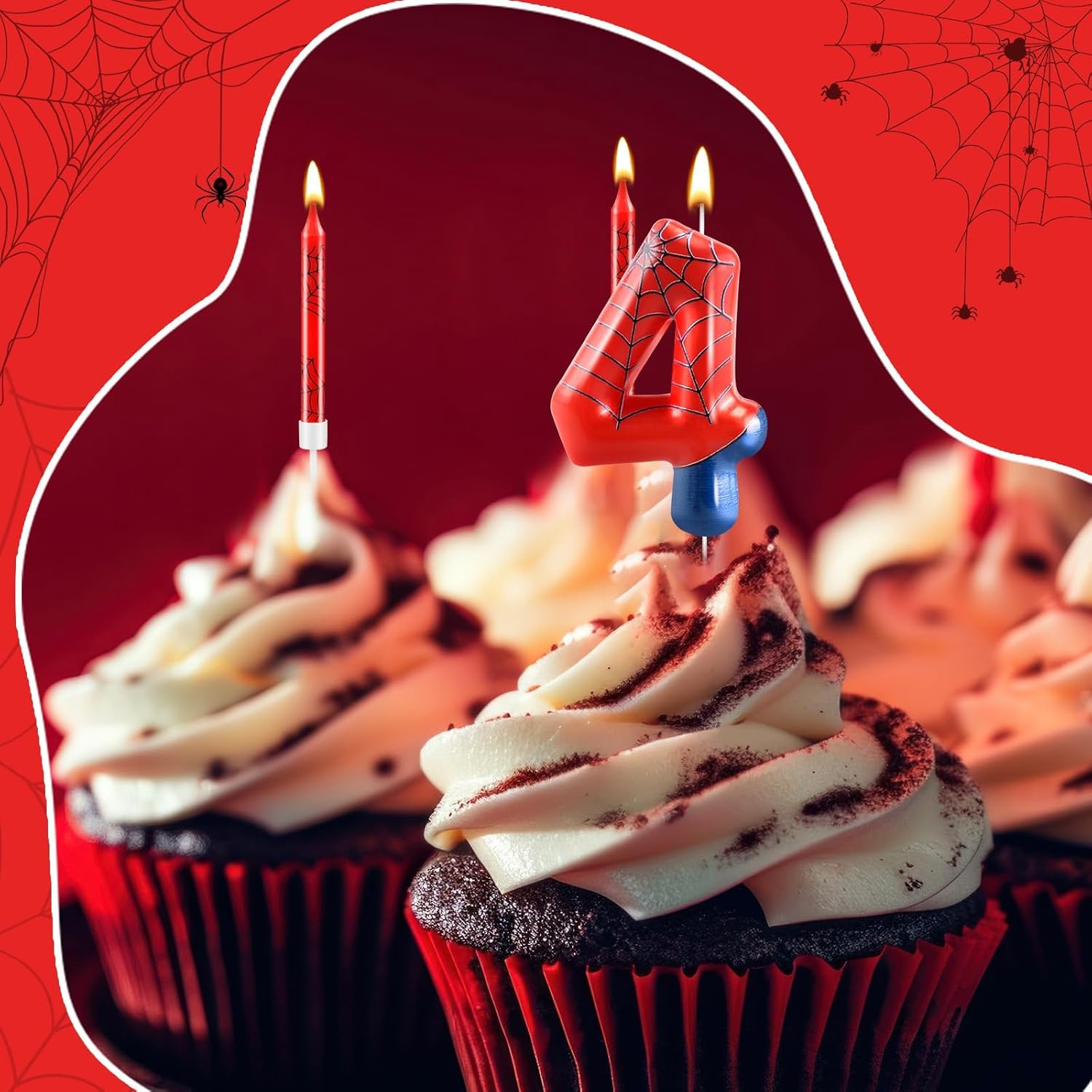 - The Package Includes: You will receive 12 red spider themed birthday candles and 1 number 4 candle, enough for all kinds of party celebrations and everyday use to create a fantastic birthday cake, note: the product may have a color difference, but it does not affect use, the candle will slowly melt as it burns, and it is recommended not to leave it on the cake for more than two minutes.