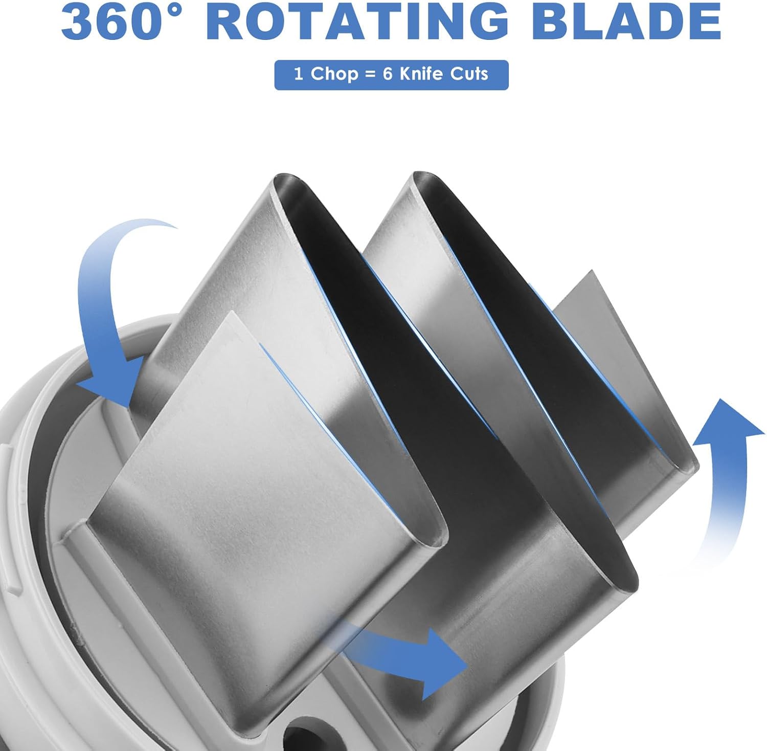 - EASY TO USE: With 360 degree stainless steel blades, chopping, mincing, dicing and grinding is faster than using a knife, one chop is equivalent to 6 knife cuts for smoother chopping. The veggie chopper can be used with its own base or directly on a chopping board, the choice is yours.