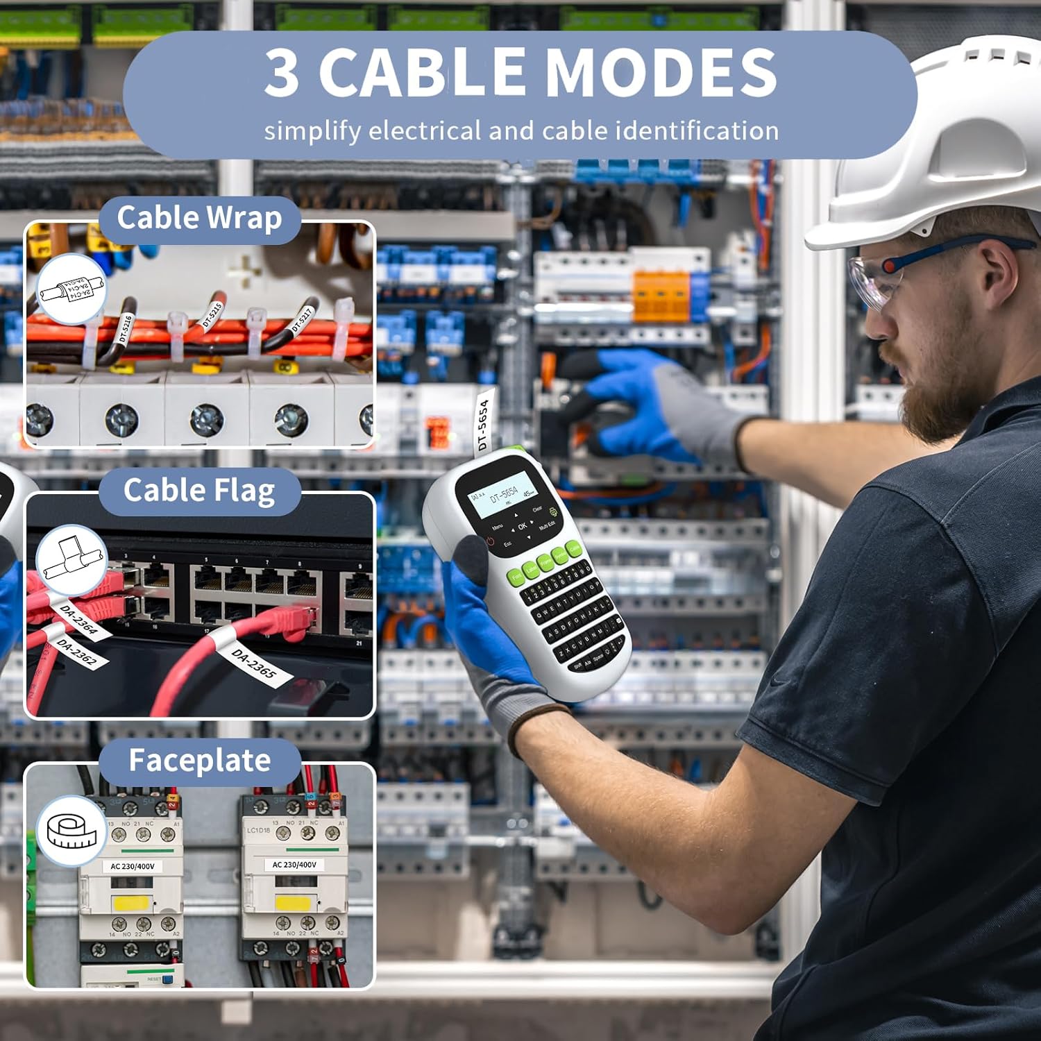 - ๐ง๐ต๐ฟ๐ฒ๐ฒ ๐๐ฎ๐ฏ๐น๐ฒ ๐ ๐ผ๐ฑ๐ฒ๐: Efficient wire label maker with three cable modes; Ideal for quick and easy cable management