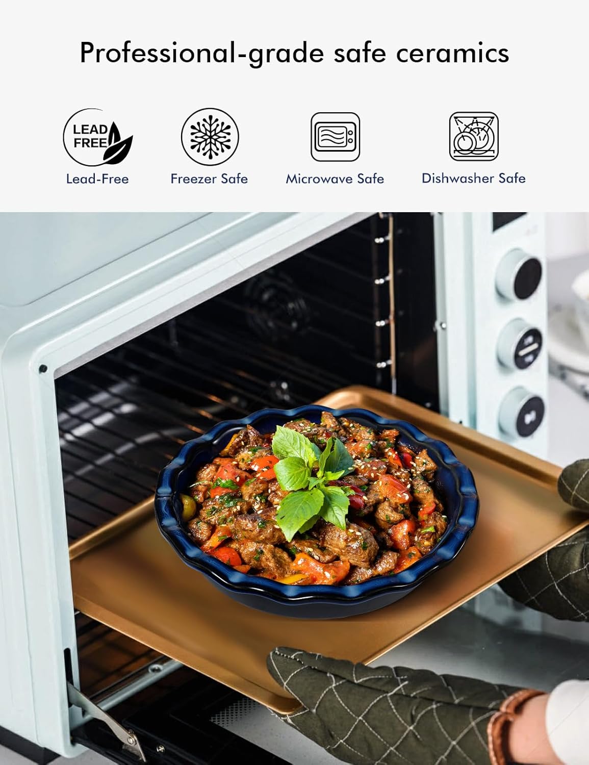 - Heat Performance & Safety: Made from food-safe ceramic, our pie pans distribute heat evenly, suitable for use in ovens, microwaves, and more. The deep dish pie pan can also be used in dishwashers and refrigerators, adding flexibility to your kitchen routine.