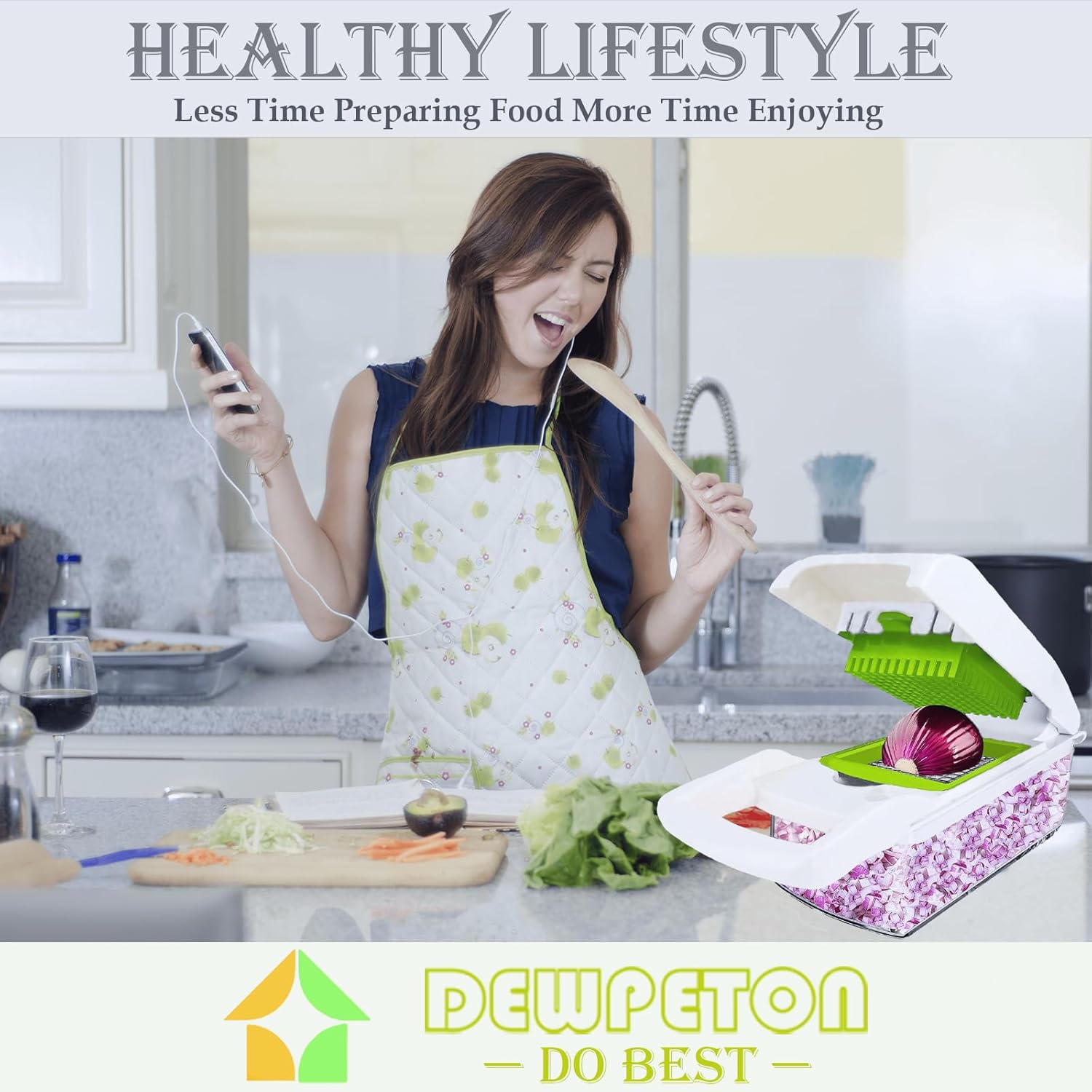- 1.5L Large Container - Built-in chop lid lets you cut foods directly into the 1.5L collection tray without the mess of a knife and cutting board. Storage container lets you hold prepared vegetables in the Dewpeton Vegetable Cutter until you are ready to begin cooking. Free-up countertop space with the Food Container. And Dewpeton mandoline slicer can be fully disassembled with ease and stored in the container. Its compact size allows you to store it almost anywhere.