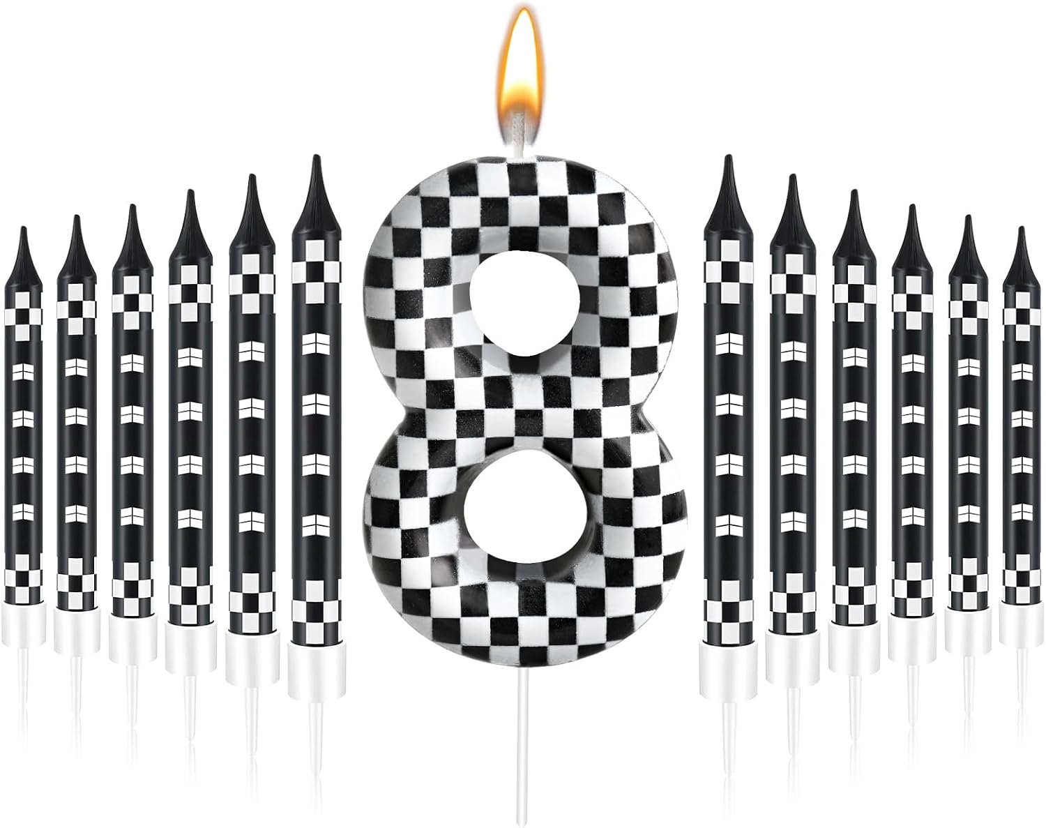 13 Pcs Racing Cars Themed Birthday Candles Black and White Race Number 8 Checkered Candle Cake Topper for Racing Car Party Decoration Supplies (Number 8)
