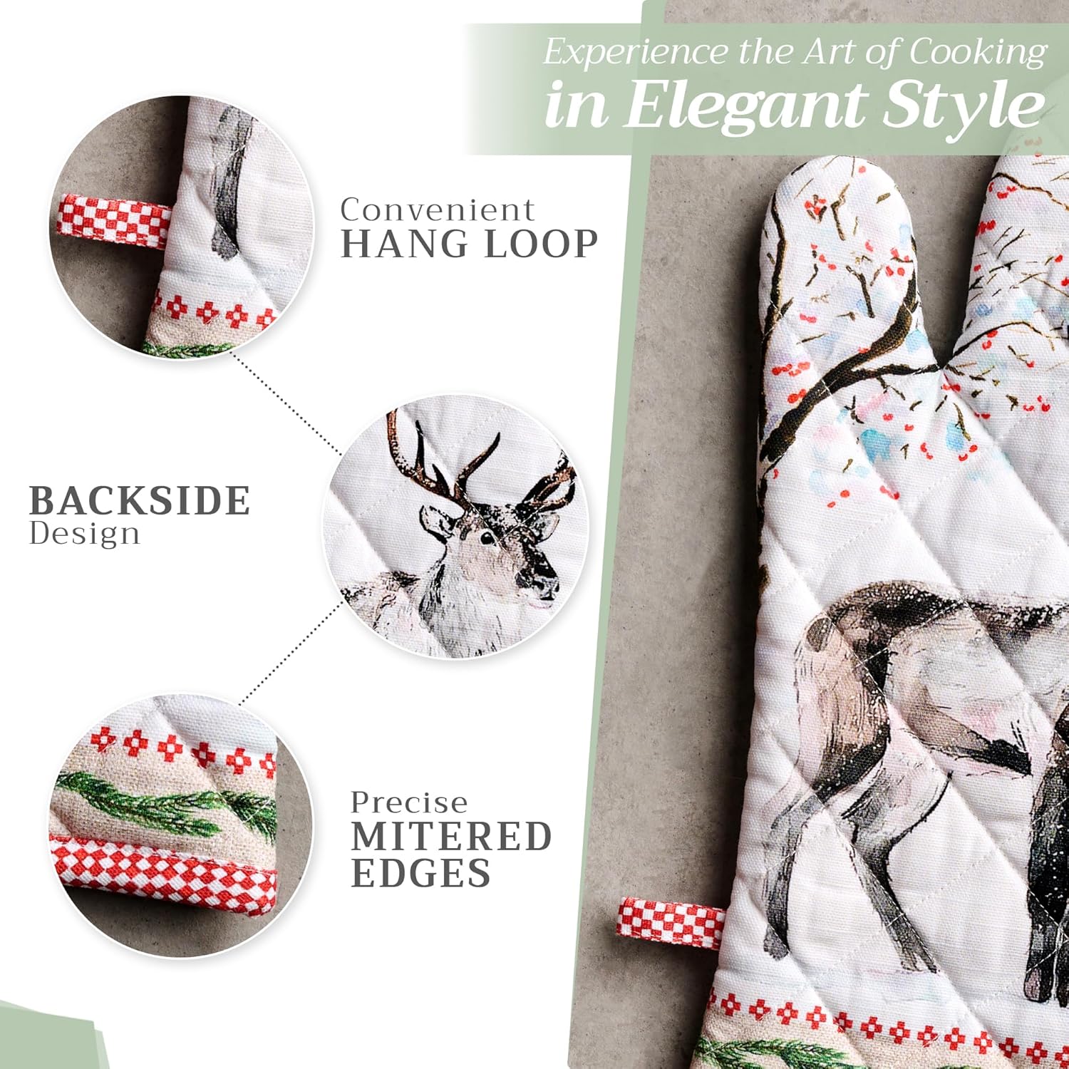 Maison d' Hermine Oven Gloves 100% Cotton Oven Mitt 7" x 13" with Loop Heat Resistant, BBQ, Cooking Gloves, Baking, Grilling, Kitchen, Handling Hot Pans (Pack of 1, Rural Christmas)