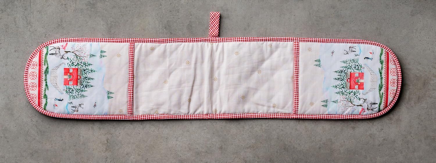 Maison d' Hermine Double Oven Mitts 100% Cotton 7"x35" Double Oven Mitt Heat Resistant BBQ Cooking Gloves with Loop, Baking, Grilling, Home, Kitchen, Handling Hot Pans (Rural Christmas)