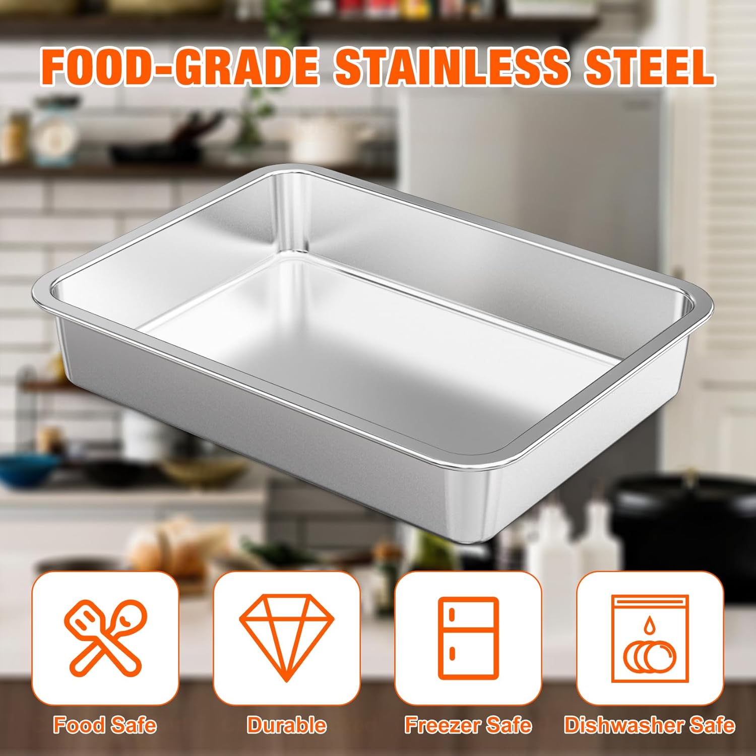 - 【Food-Grade Safety】- Made of high-quality food-grade stainless steel, this baking pan ensures no harmful chemicals are released at high temperatures, safeguarding your health. It's also lightweight for effortless handling.
