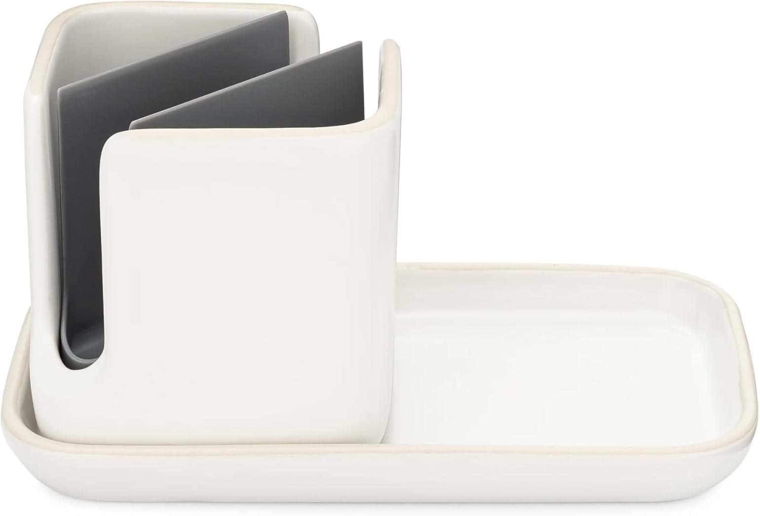- BEAUTIFUL CERAMIC CADDY: stylish, durable and ideal for the kitchen -- simply place in the dishwasher to refresh, no need to be concerned about it rusting as with other materials