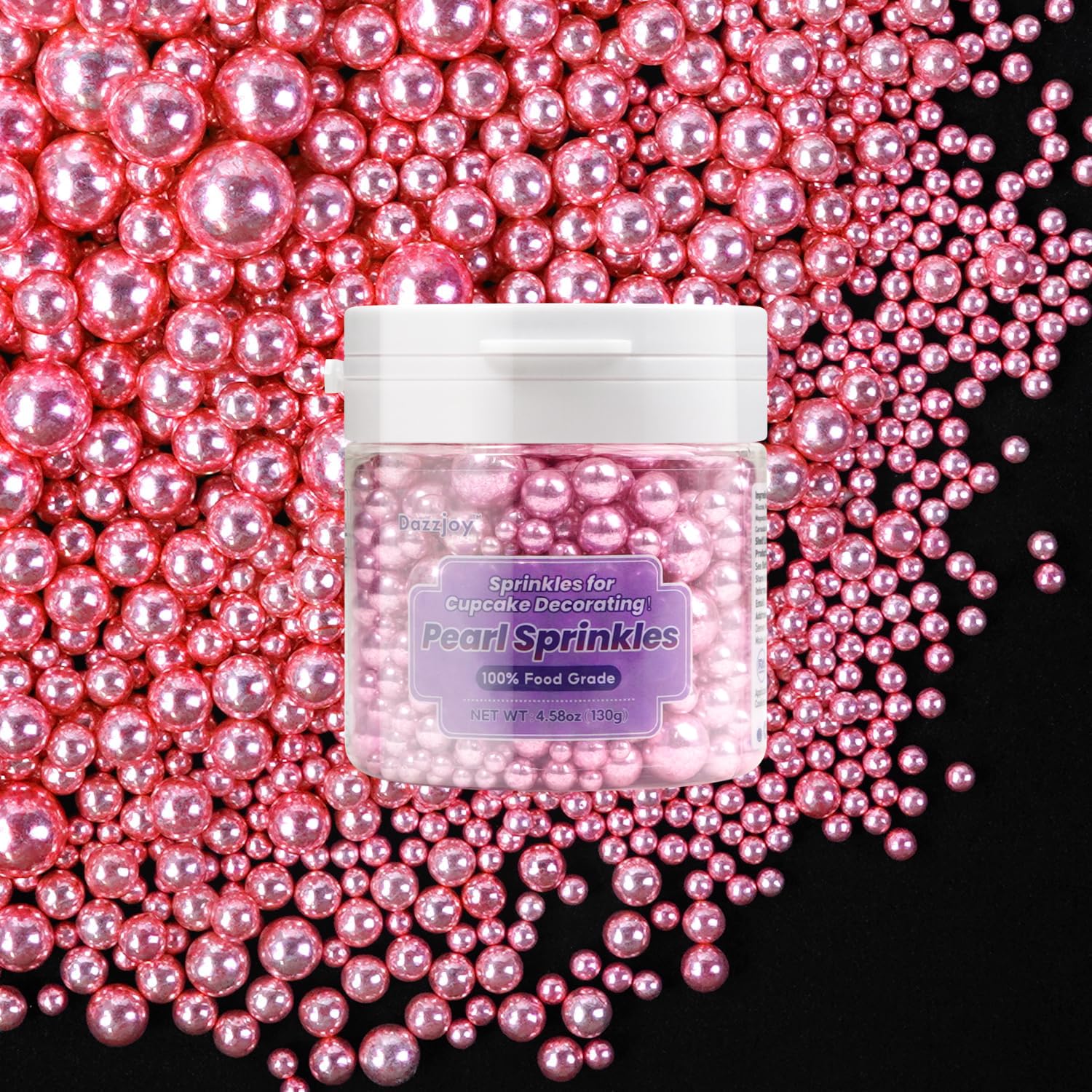 Dazzjoy Edible Rose Gold Pearl Sugar Candy Sprinkles, Mix Size, 4.58oz, Sprinkles for Cupcake Decorating, Baking Cake Decorations, Wedding Party Valentines Easter Supplies