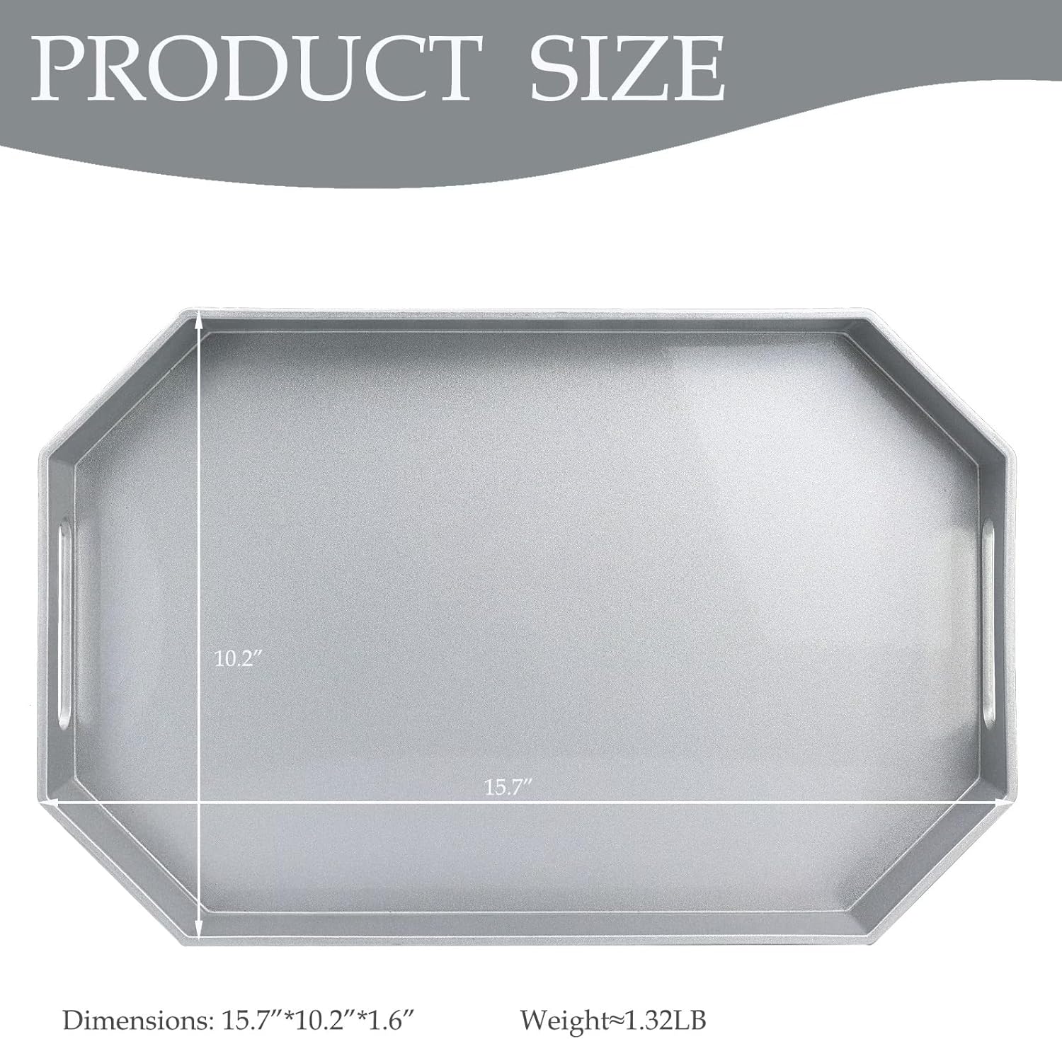 Spsyrine Silver Plastic Serving Tray for Ottoman, Coffee Table, Octagon Decorative Tray for Entertaining, Outdoor, Living Room, Home Decor