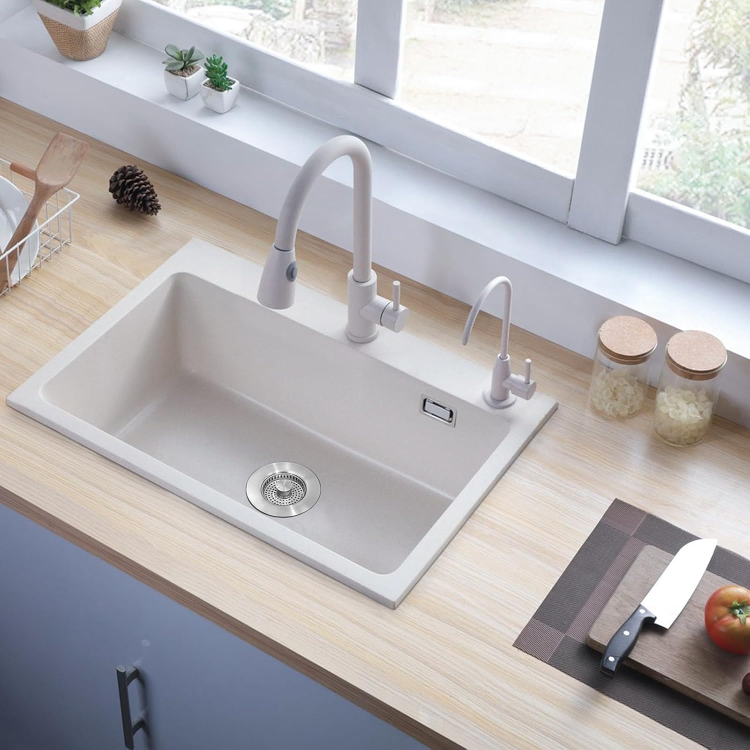 - ❅Anti clogging design: Newly upgraded sink drain stopper has an appropriate basket hole design, easily capture food waste. The kitchen sink filter is designed with 3 large drainage holes to ensure quick drainage without clogging. Double insurance ensures no blockage.