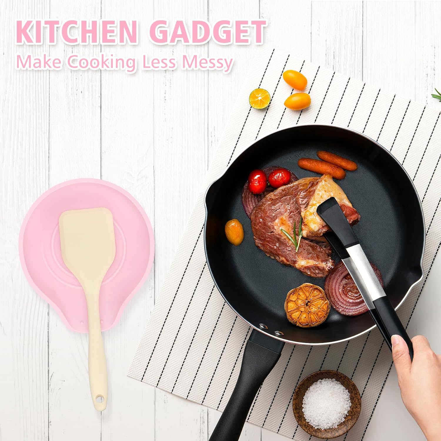 Silicone Spoon Rest for Stove Top - BPA-Free, Heat-Resistant Spoon Holder - Spoon Rest for Kitchen Counter - Large Cooking Utensil Rest for Spoons, Spatulas, Ladles or Tongs - Pink