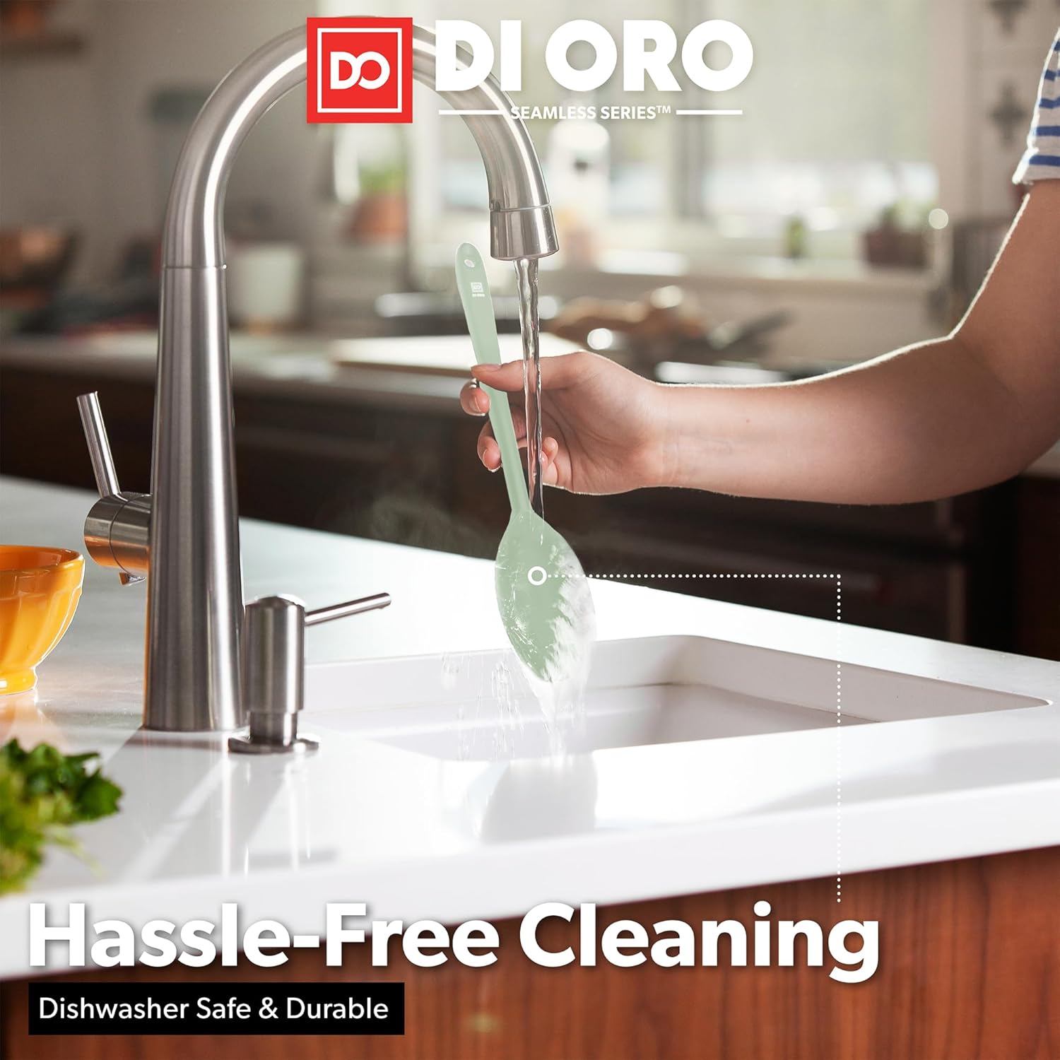 - ONLY THE BEST – By popular demand, we have added a 2-Piece Silicone Spoon Set to our Award-Winning Seamless Series line of kitchen utensils. The DI ORO Seamless Series Slotted and Solid Spoons are made with food grade, BPA Free, and LFGB Certified Silicone. Built to withstand the heat, these essential kitchen tools are heat-resistant up to 600°F, which means you will never melt your favorite spoons.