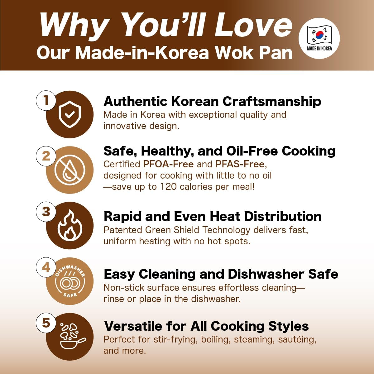 - Color : Gold Wok Pan + Lid