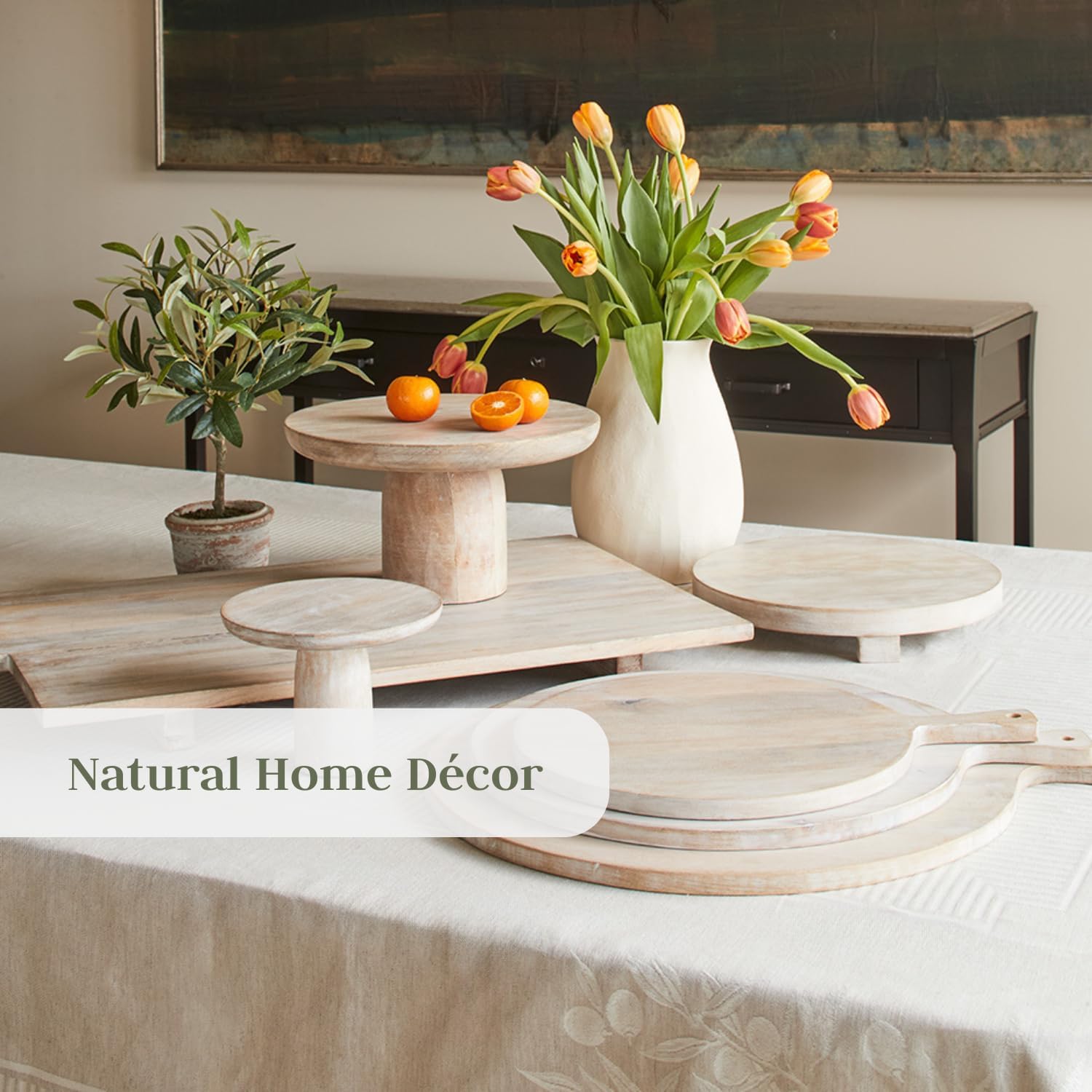 - HIGH QUALITY MATERIALS: Our round cutting boards measure 19" x 19" and are crafted from light mango wood, showcasing its natural grain and warm hues. Handmade by skilled artisans, the paddle design features a convenient handle for easy carrying and presentation.