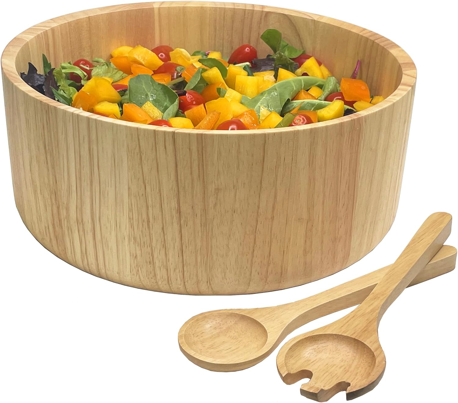 - SIZE: Our 11” x 4 1/2”, Rubberwood Salad Bowl with 10" Servesr, is perfect for all your entertaining and serving needs. Whether you are having a party at home of if you are a restaurant.
