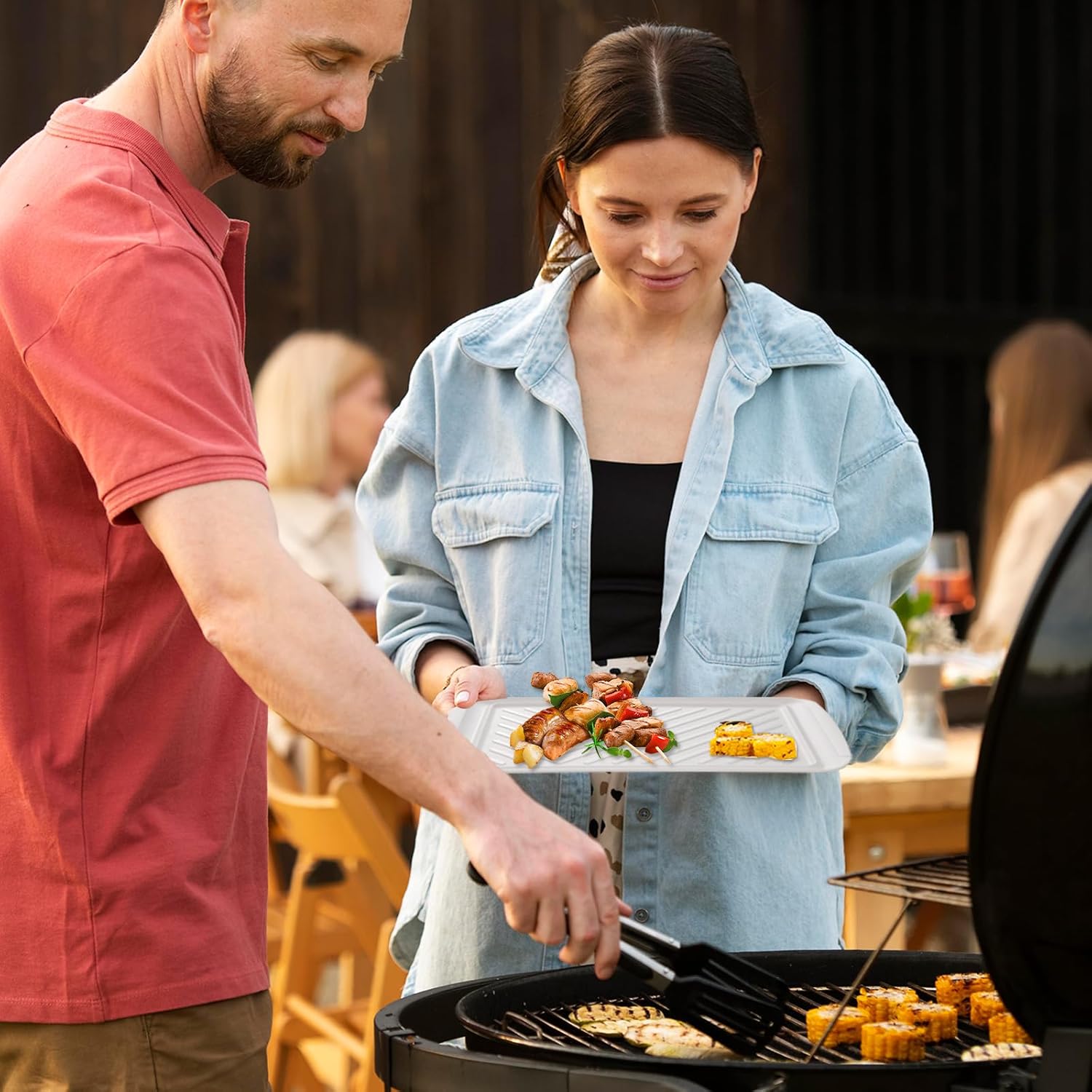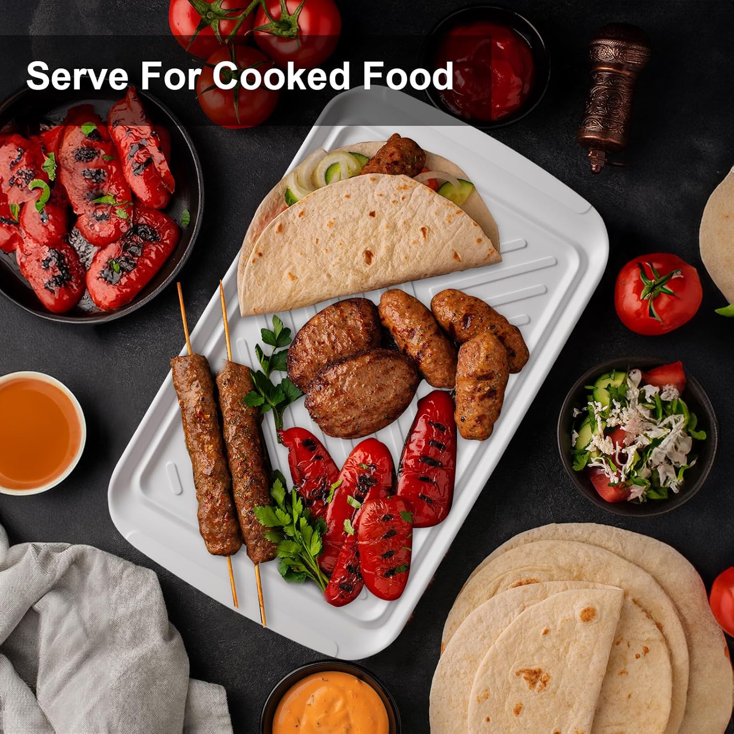 - Spacious BBQ Companion: The measures of this large rectangle serving tray is 17.2 x 10.5 inches, perfect for BBQ prep and serving, ideal for carrying all your BBQ essentials and charcuterie, it's a must-have for outdoor activities, parties, grilling and camping.