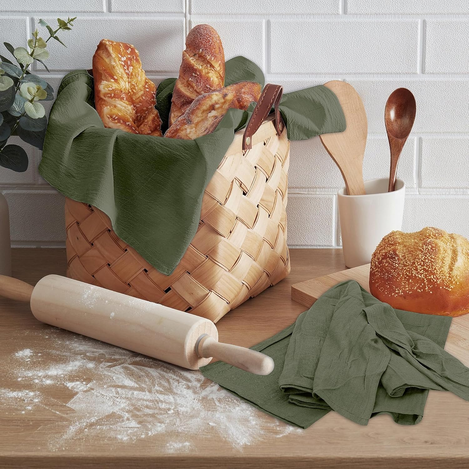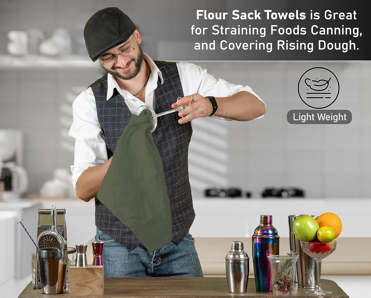 RUVANTI Flour Sack Towels 4 Pack 28x28 Inch, 100% Cotton Tea Towel, Reusable, Machine Washable, Absorbent BarTowels - Dish Cloth Perfect for Drying Dishes & Cleaning - Martini Olive