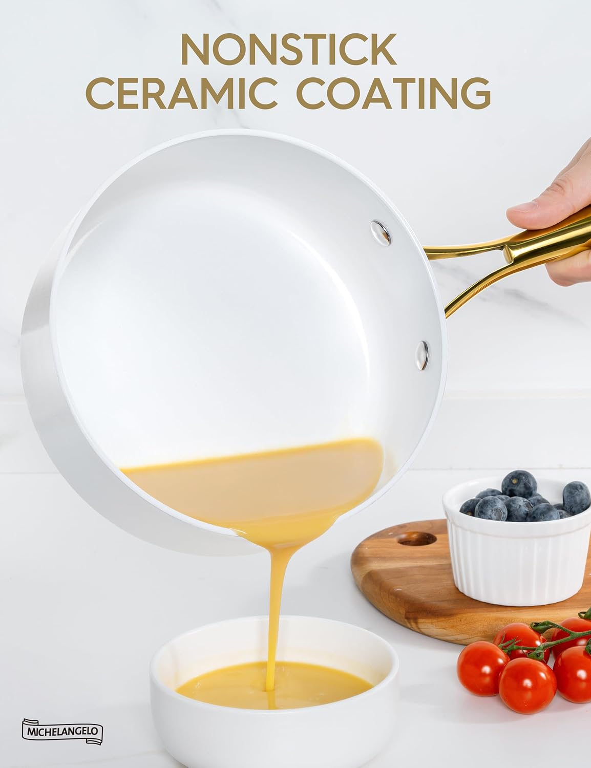 - Nonstick Experience - The sauce pan sets have a non-stick ceramic coating that gives you an ultra-nonstick cooking experience and effortless cleaning.