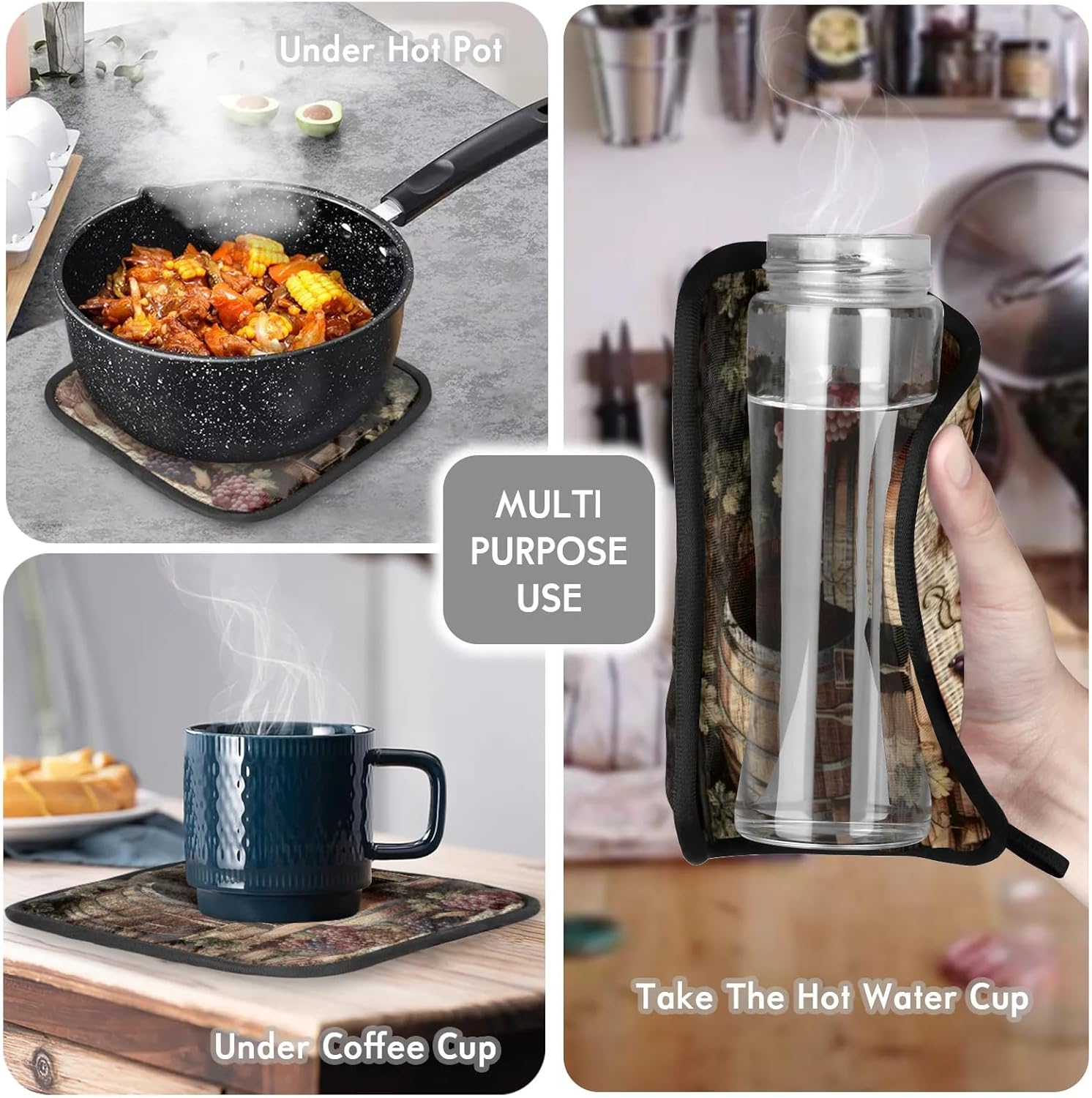 - HEAT RESISTANT: Our oven mitts and pot holders sets are made with a polyester faux linen fabric on the surface. The inside is filled with insulating needle cotton, thick and textured. It protects your hands from burns