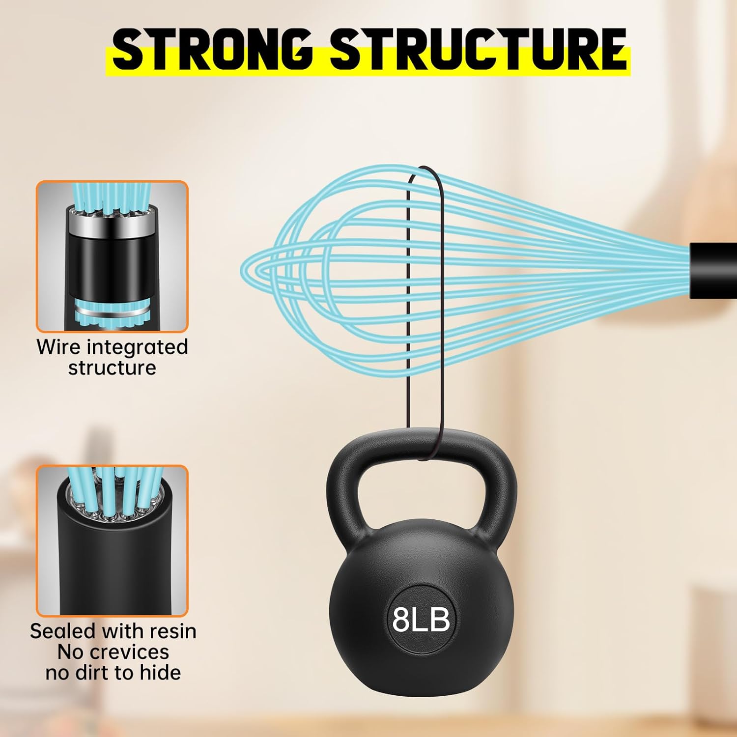 - 484ºF High Heat-Resistant: Feature BPA free silicone wires. 1.65mm thickened wires coated in 0.3mm soft silicone makes it stronger and more durable. Great for stirring sauces and gravies while heating.