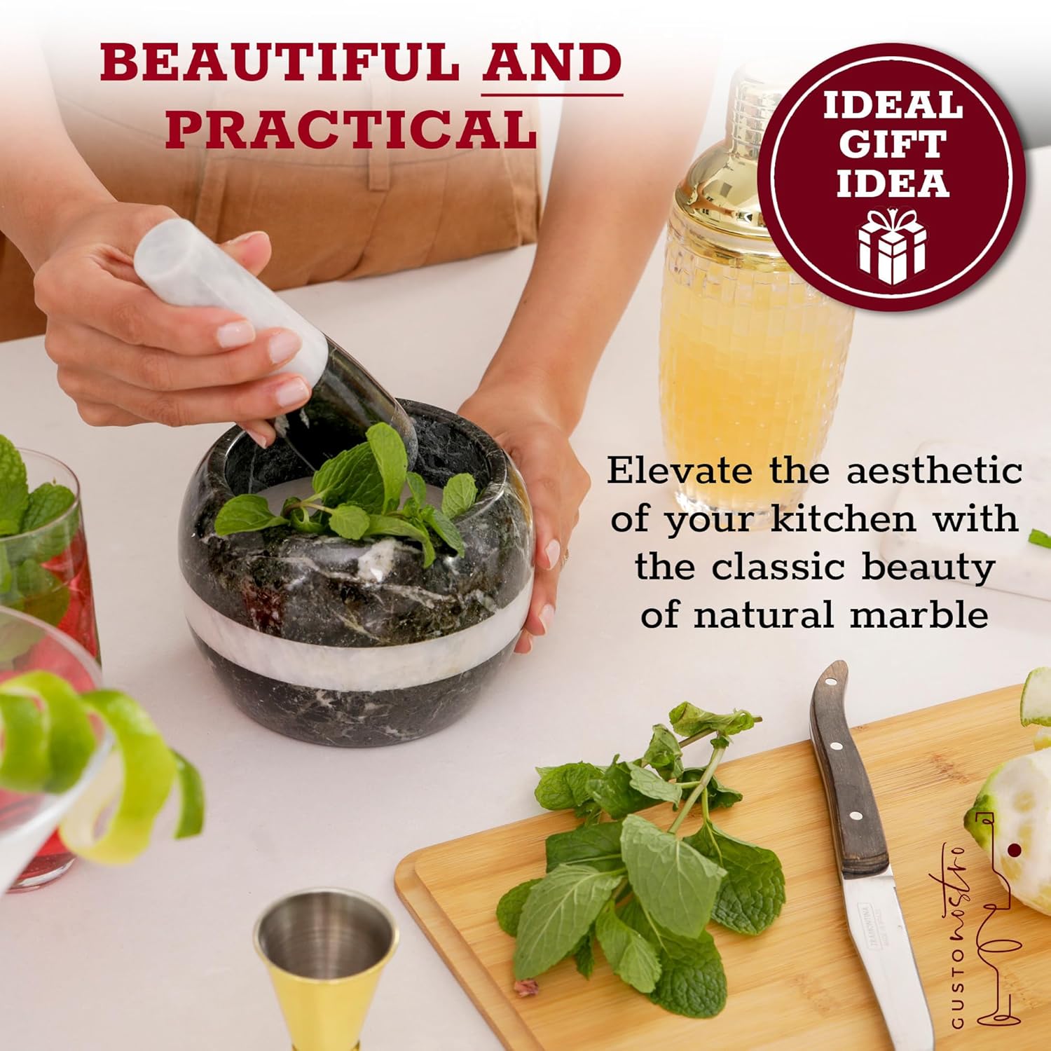 - LUXURIOUS KITCHEN MASTERPIECE This pestle and mortar set, designed with enhanced functionality and aesthetics, is an ideal gift for any kitchen enthusiast, Crafted from premium marble ensures optimal grinding performance, perfect for both novice cooks and seasoned chefs alike